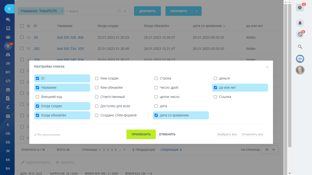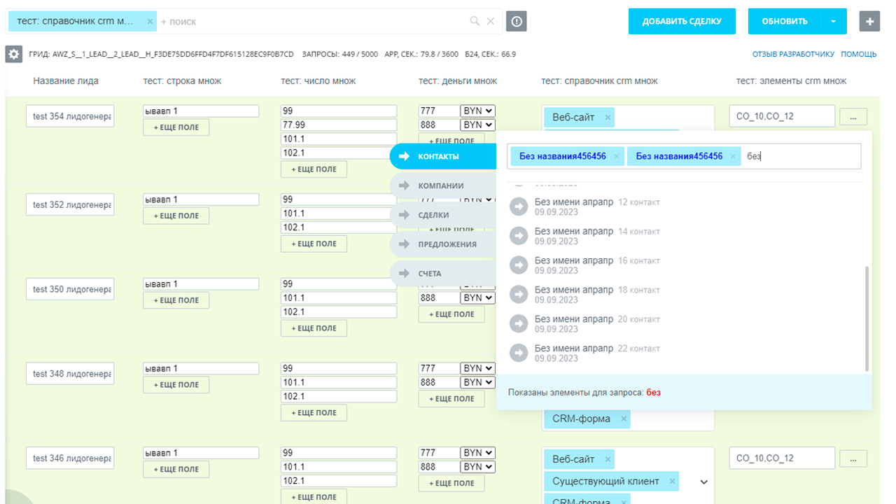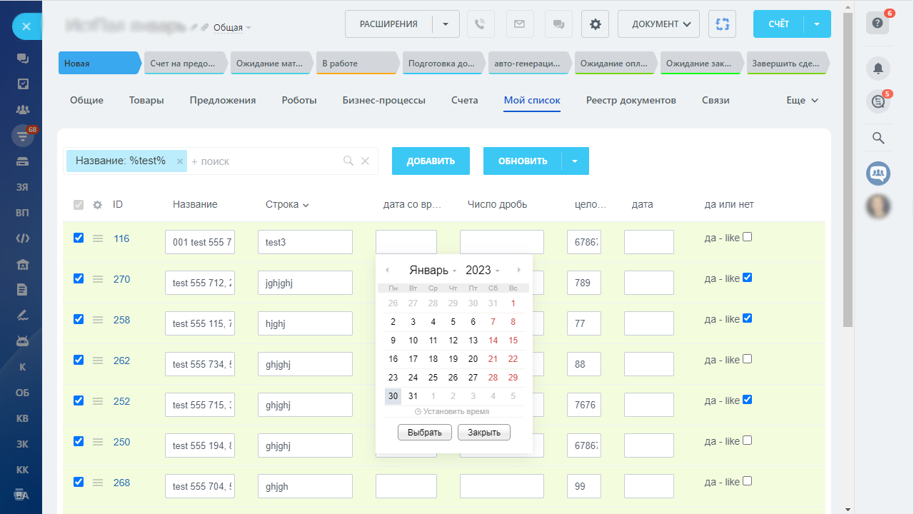 CRM сущности (Встройки с редактированием, сортировкой, фильтром)