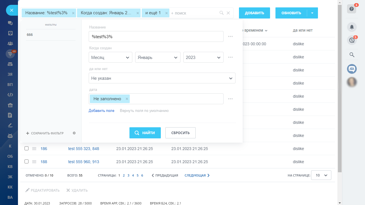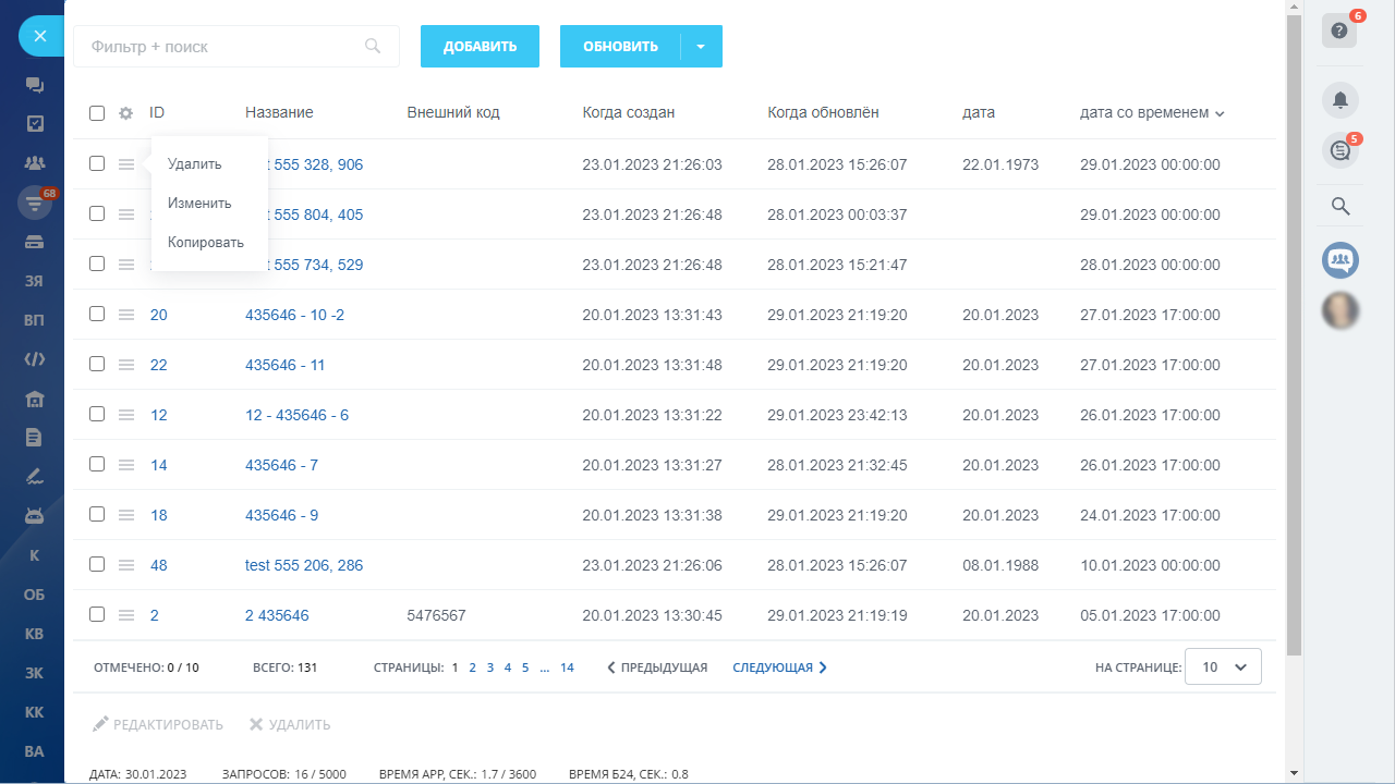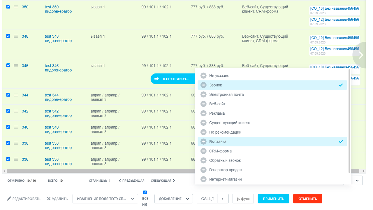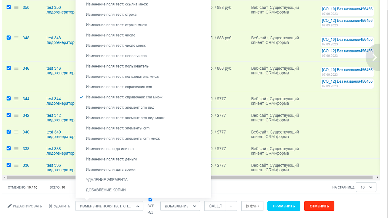 - Изменение ответственного (и любого другого поля) в элементах сущности по фильтру.