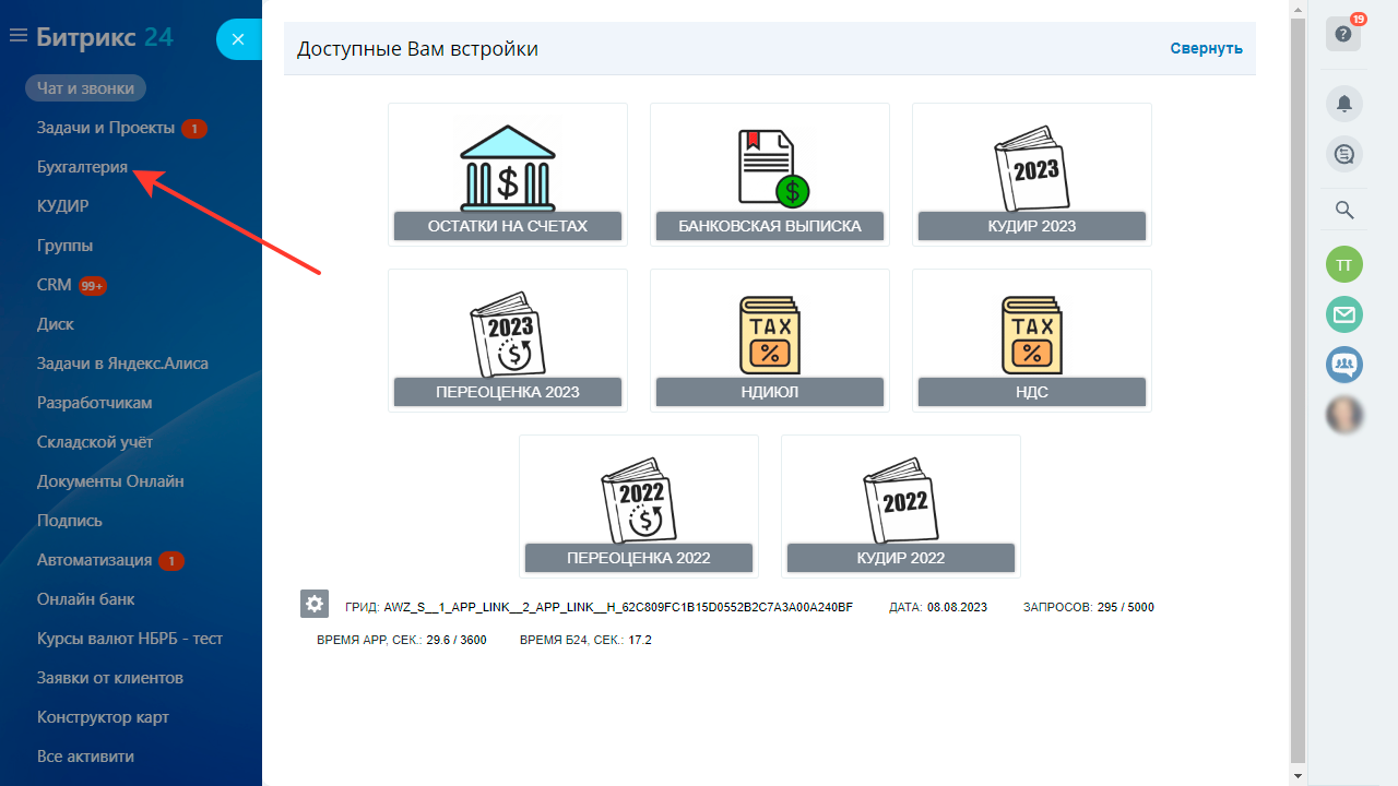 - вывод задач с другого портала в карточке компании;