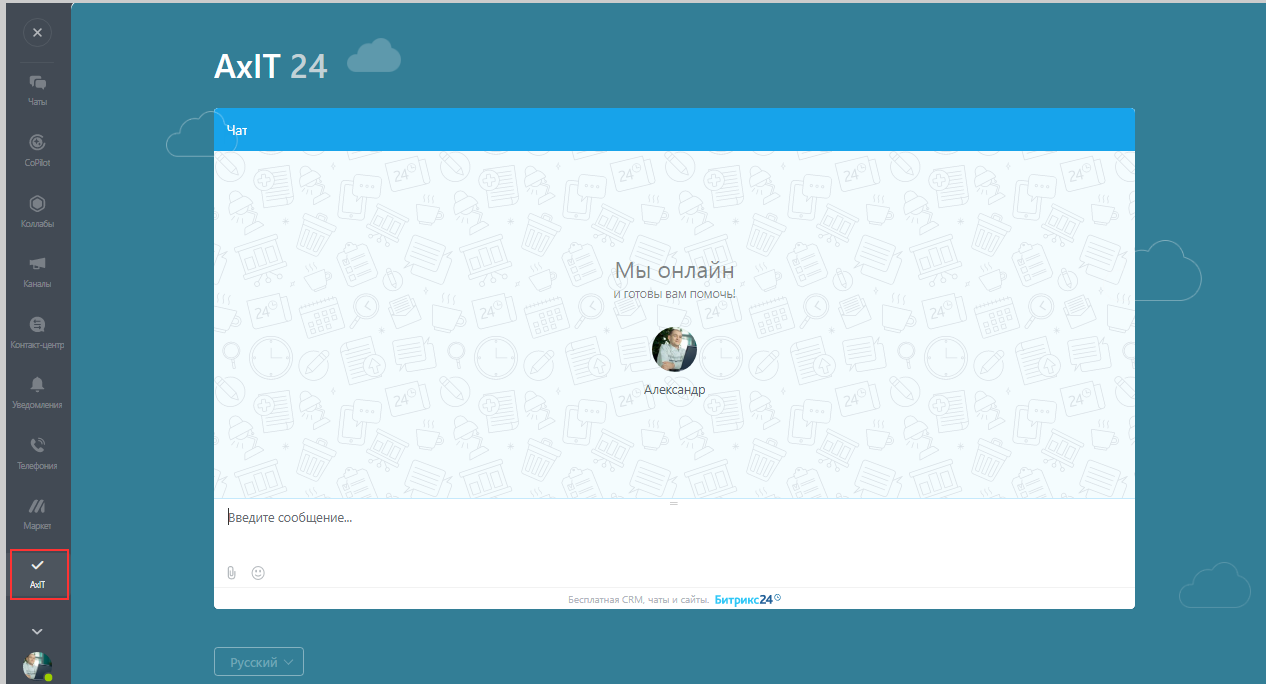 - После настройки приложения на портале1, в мессенджере появится ссылка на онлайн чат портала2 (см. скрин №3).