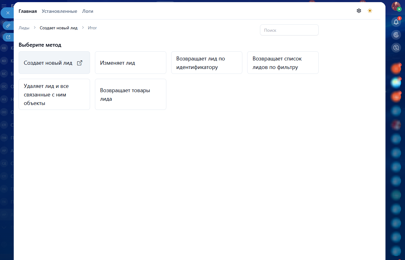 • Получить лиды по фильтру (50 шт.);