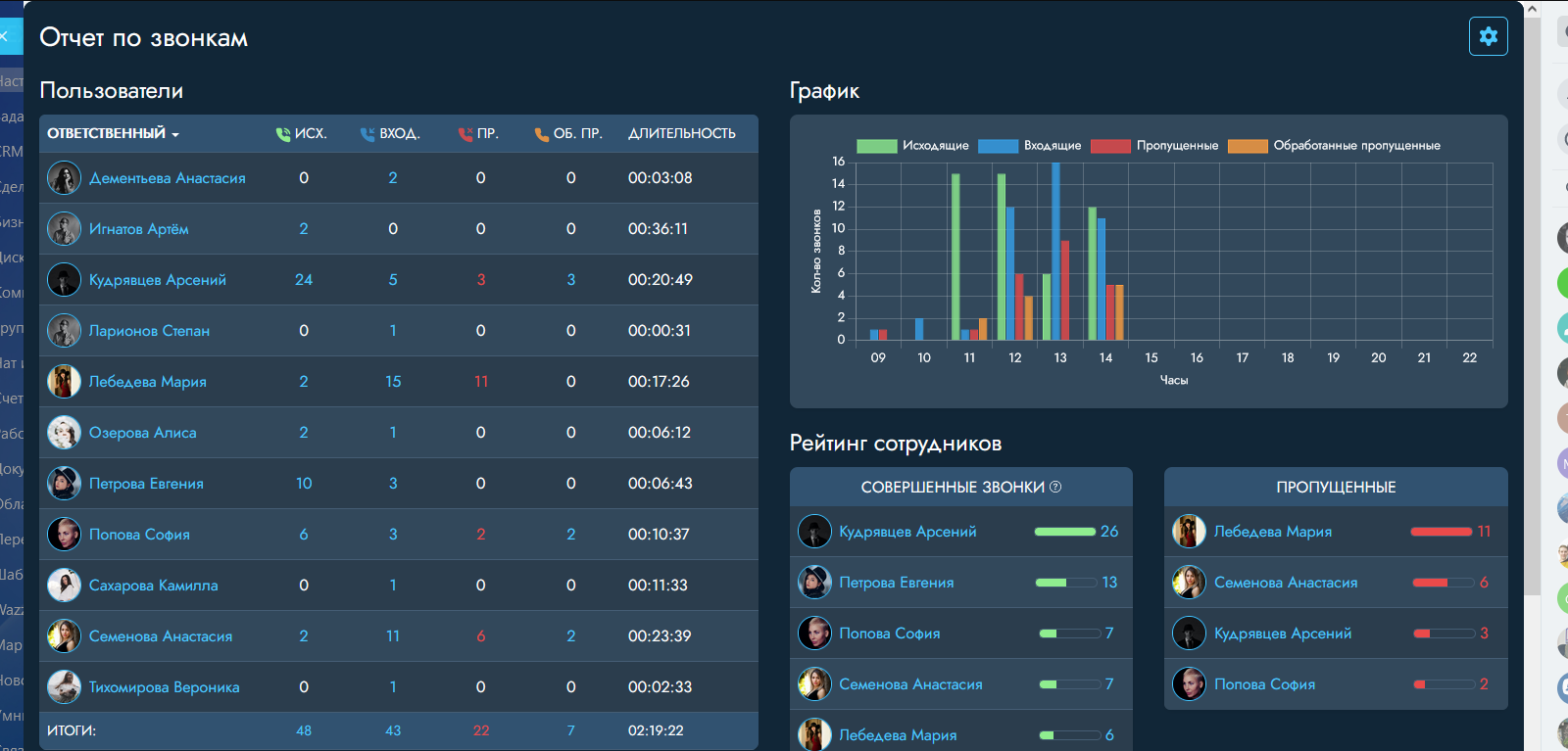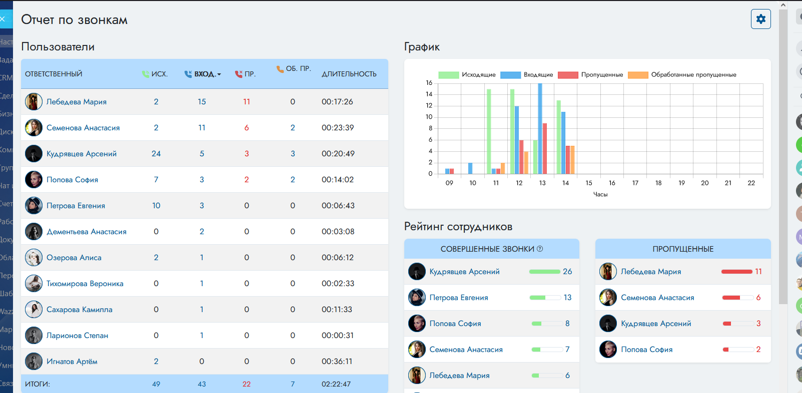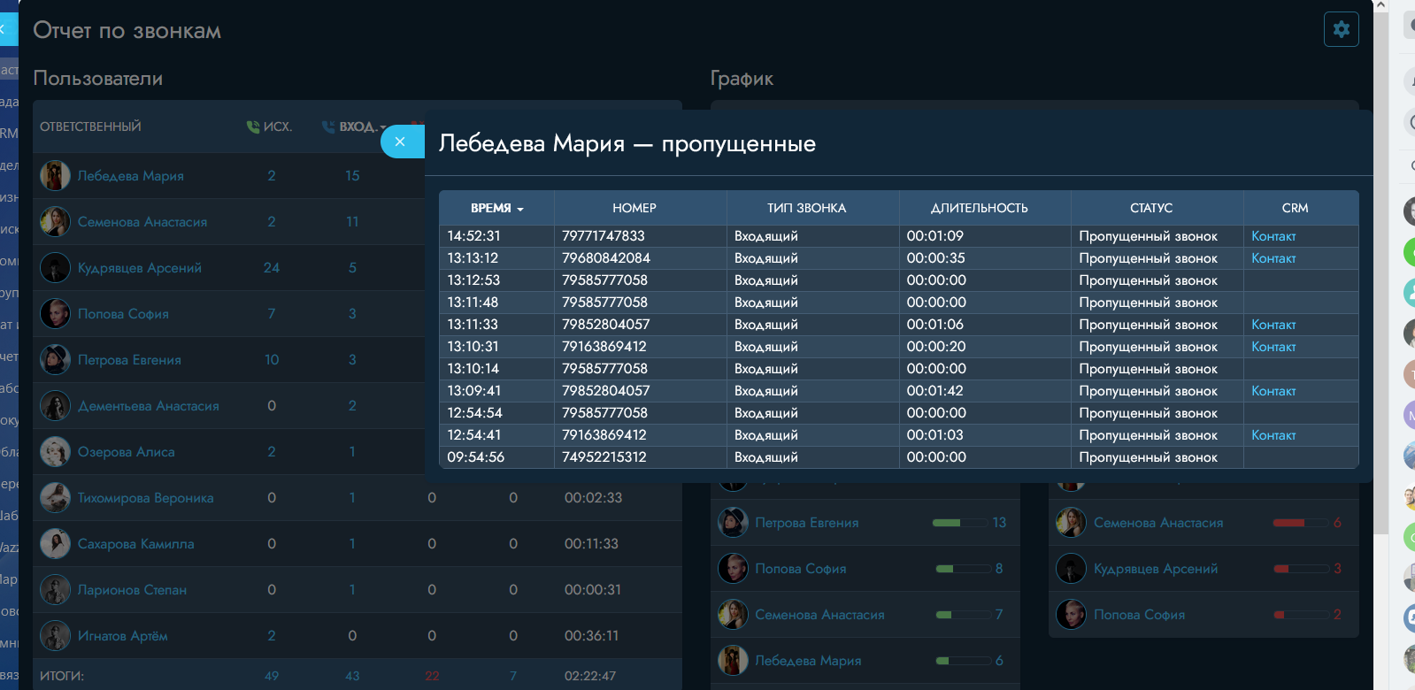 - Теперь входящие звонки не содержат пропущенные звонки. Так проще понять результат сотрудника