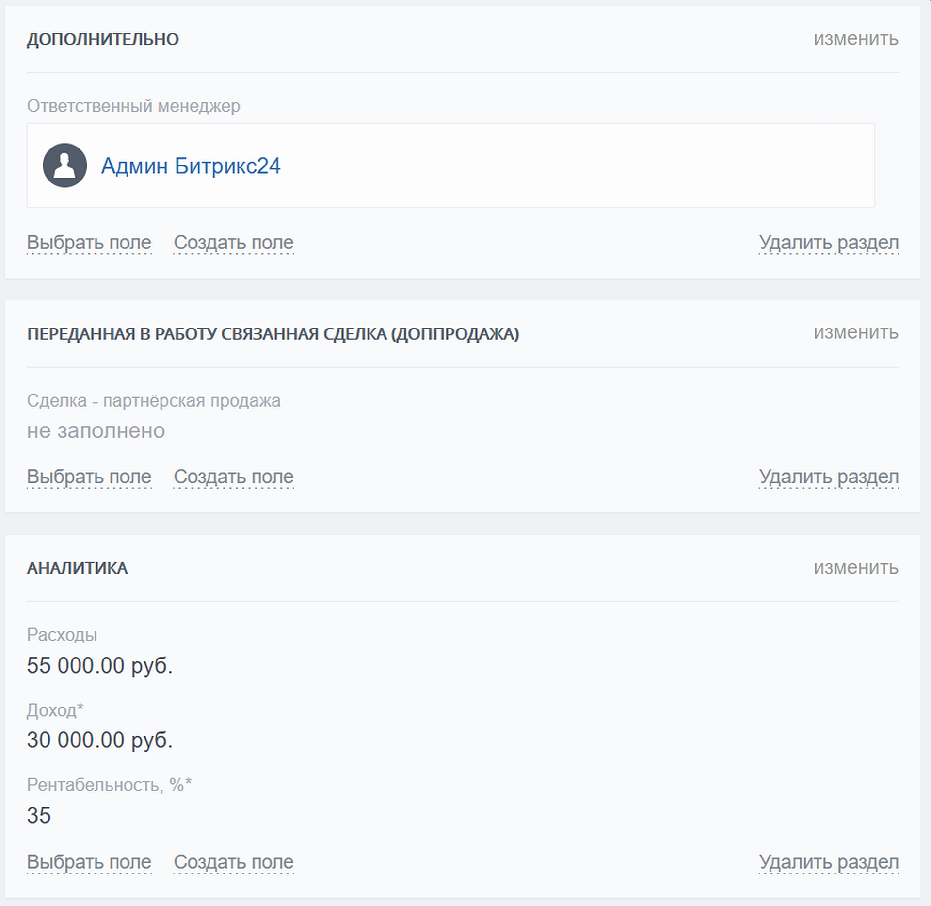 - Бесплатный: Воронка продаж и поля стадий в сделке