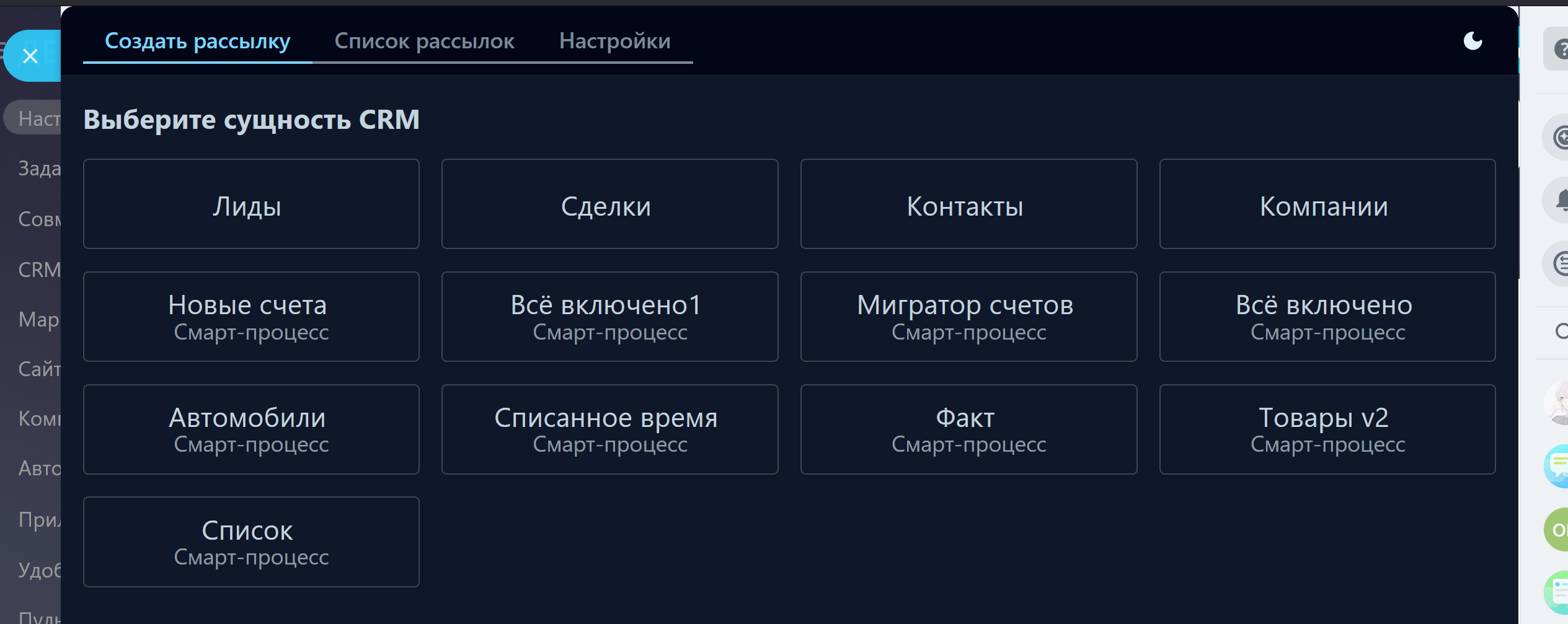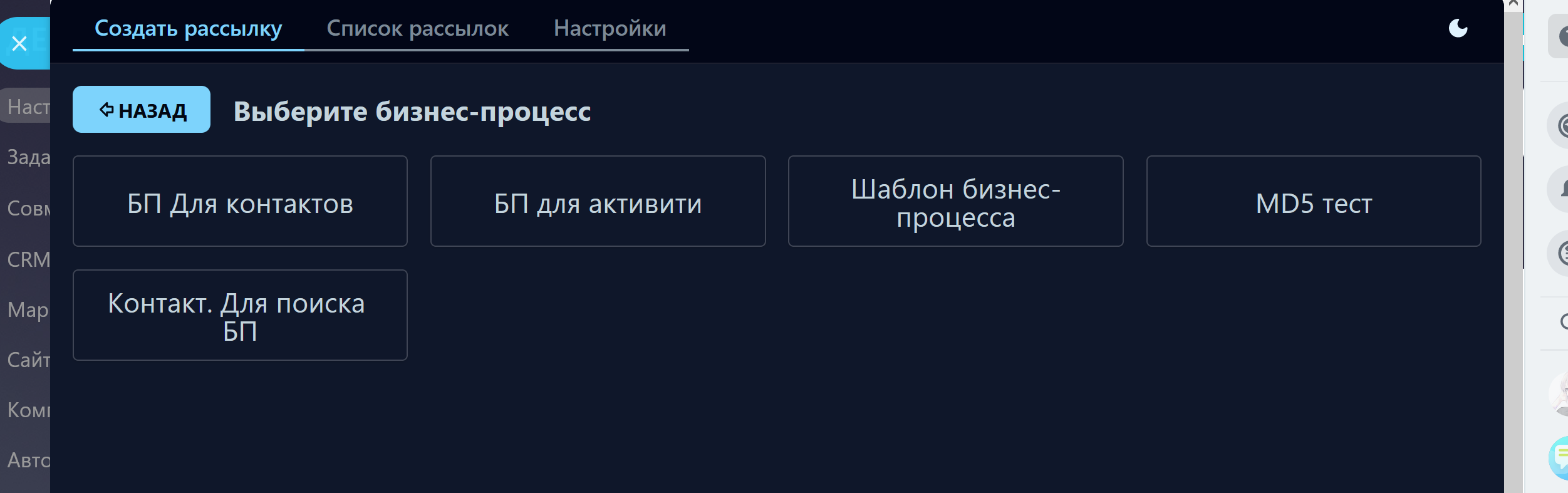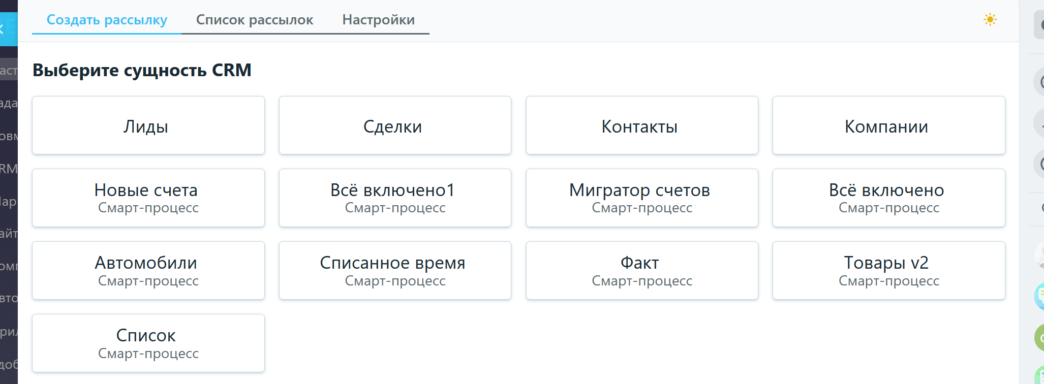- Вы также можете добавить в бизнес-процесс изменение скрытого поля, чтобы по нему можно было фильтровать определенную рассылку. Например, поле "Источник рассылки" = "Рассылка Москва". Или вы можете на каждую проведенную рассылку создавать связанный элемент смарт-процесса.