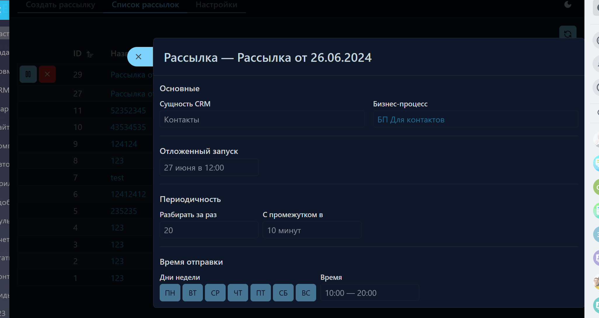 Конструктор рассылок через запуск БП с равномерной нагрузкой