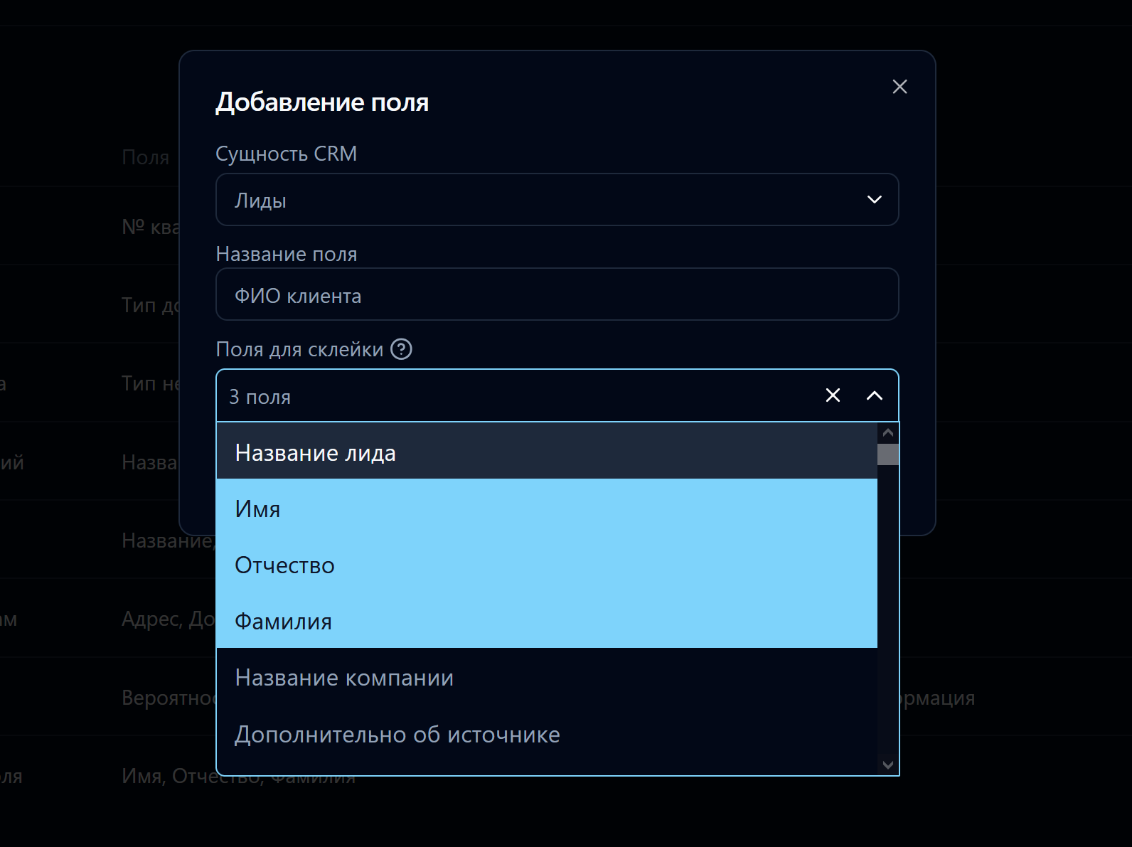 - Отображение от 1 до 4 полей в один ряд по горизонтали;
