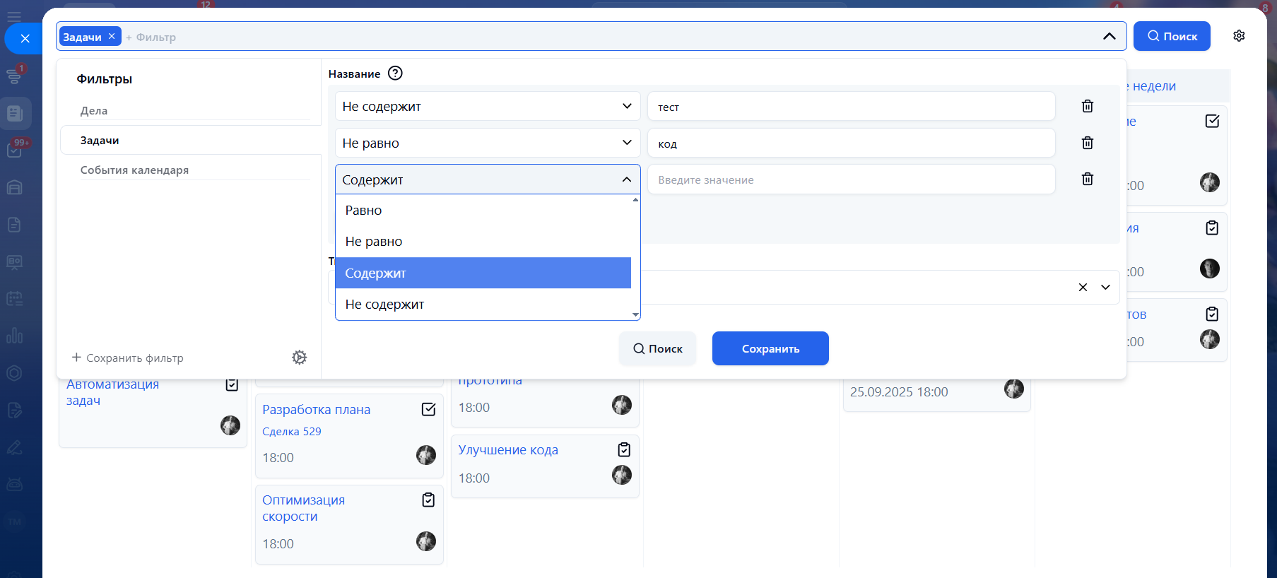• Возможность сохранения фильтров для удобного отображения только необходимых в данный момент сущностей.