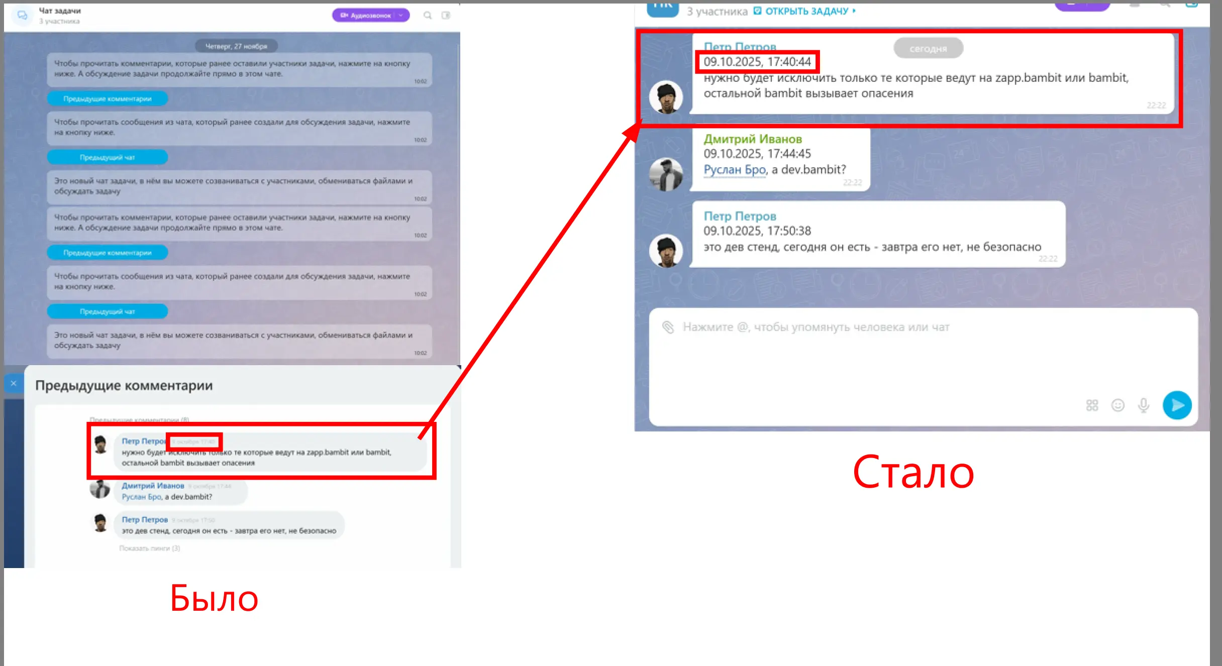 Перенесите старые комментарии в новые чаты задач