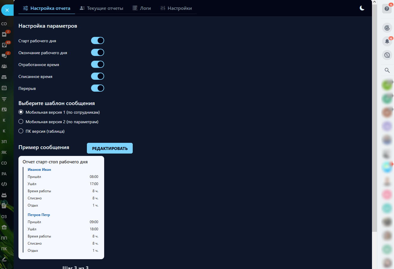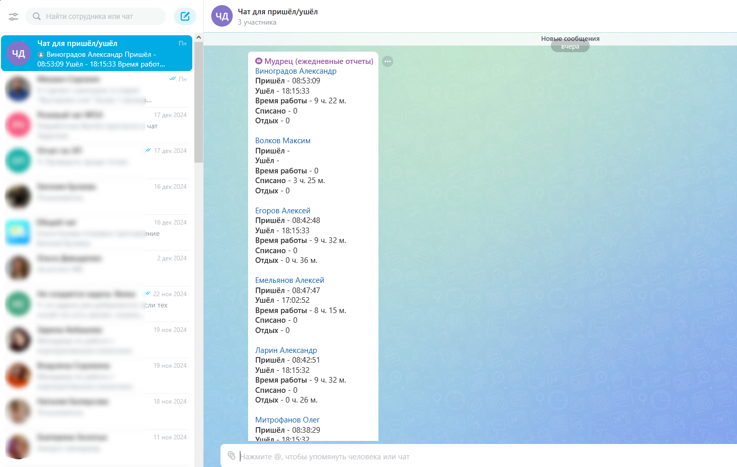 Ежедневные отчеты: Пришел, Сделал, Ушел