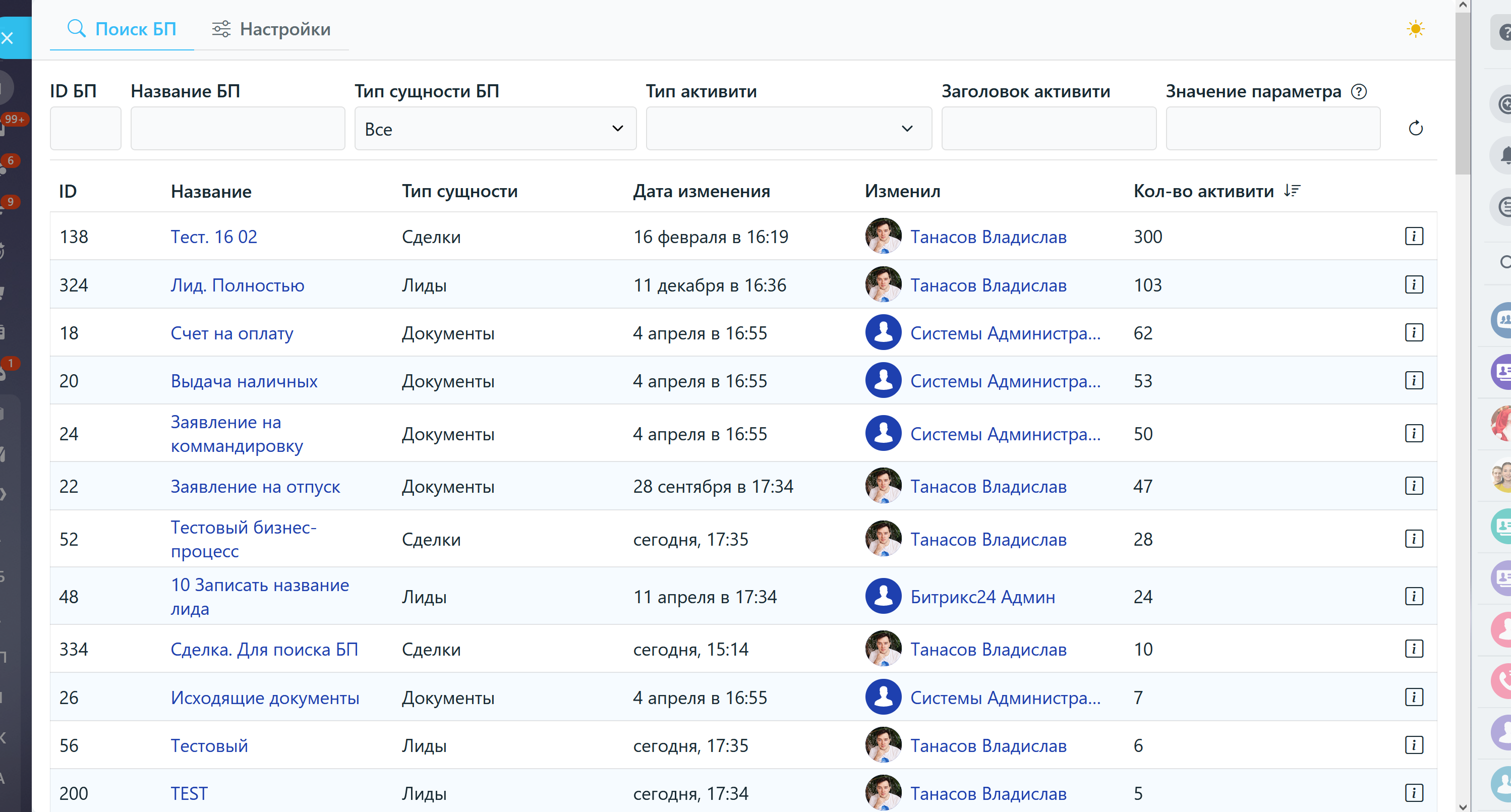 - Припоминаете заголовок активити и поочередно открываете десяток бизнес-процессов.