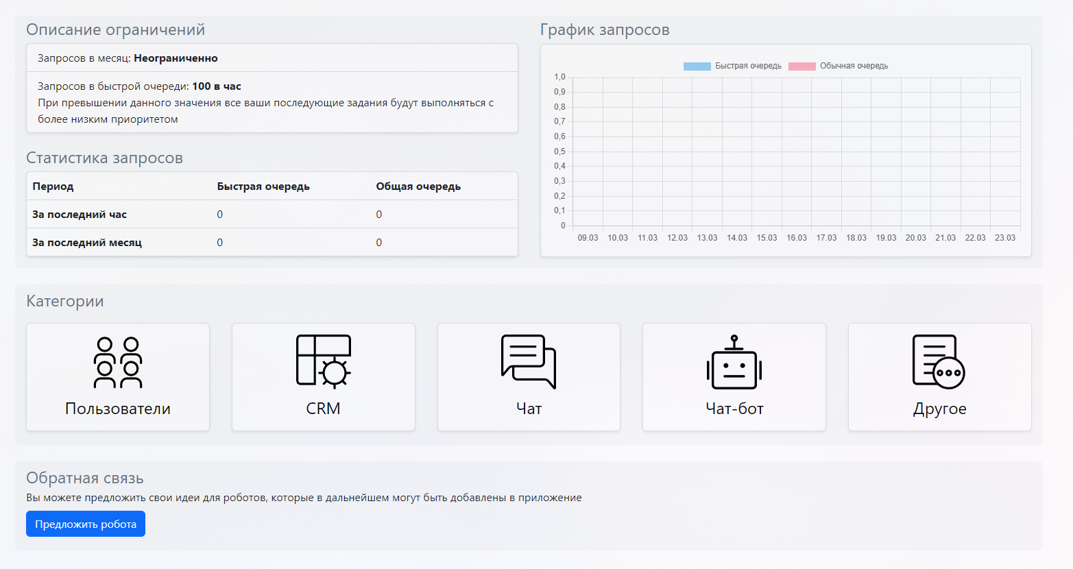 - Роботы в задачах работают на тарифах - Профессиональный, Стандартный;