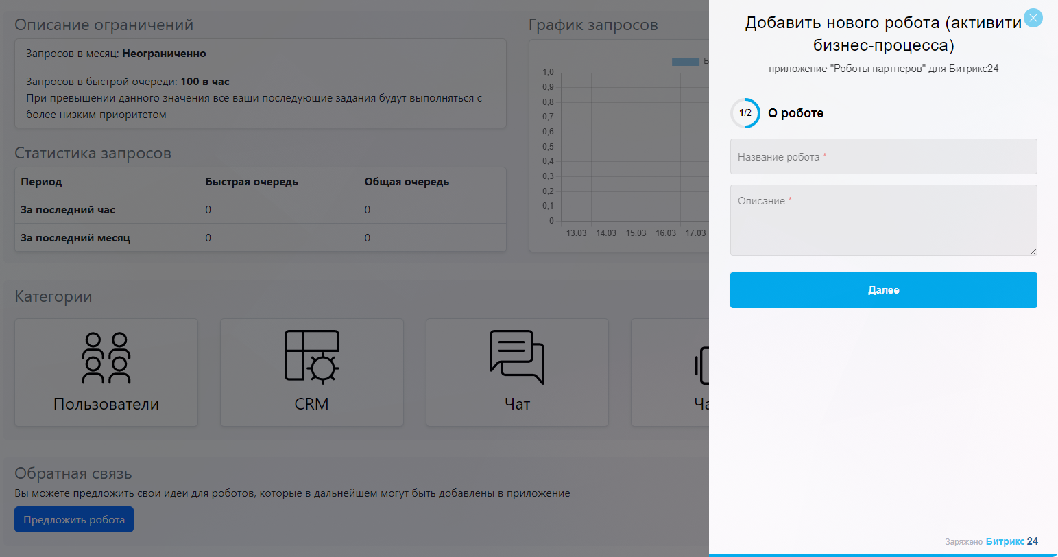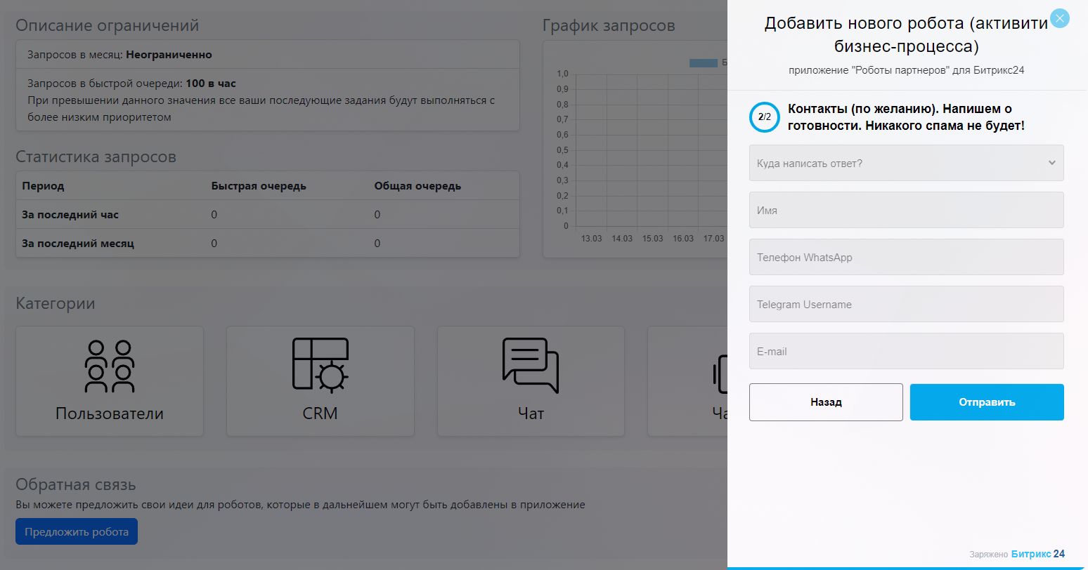 - Или добавим робота бесплатно в это приложение (если робот популярен и не будет чрезмерно нагружать наш сервер).