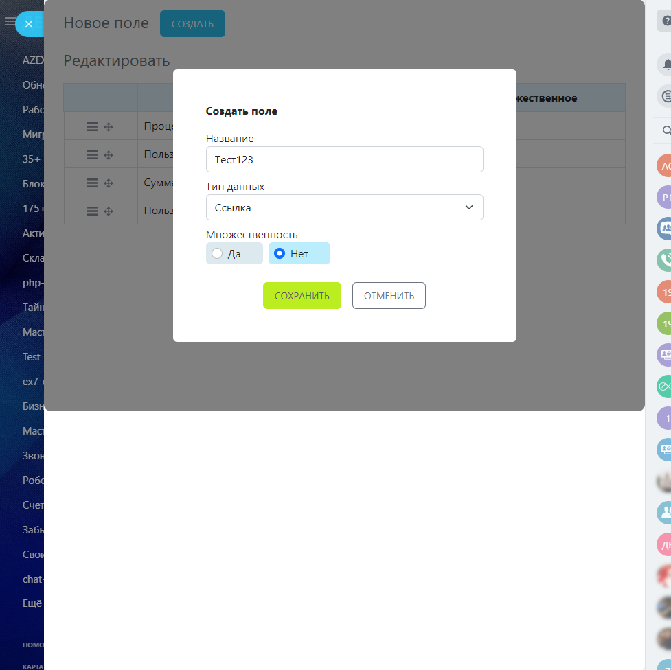 - Нет возможности использовать "свои" поля в бизнес-процессах. При наличии запросов на данный функционал мы постараемся его реализовать;