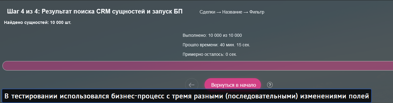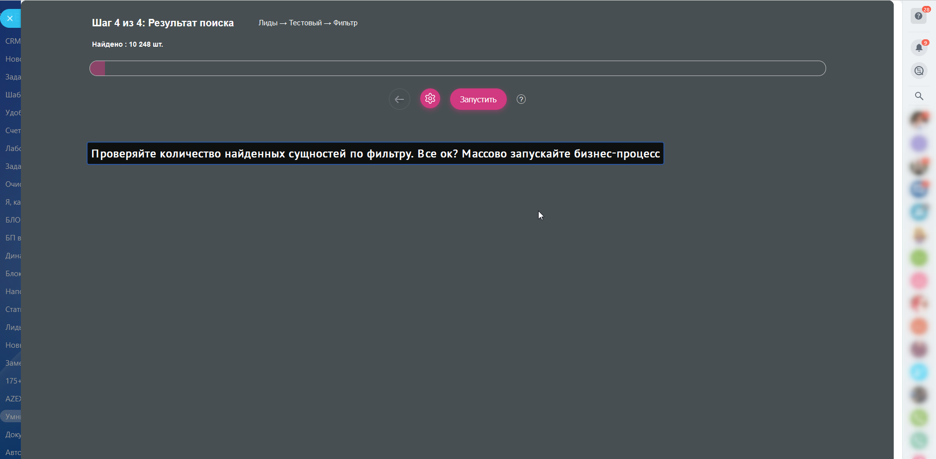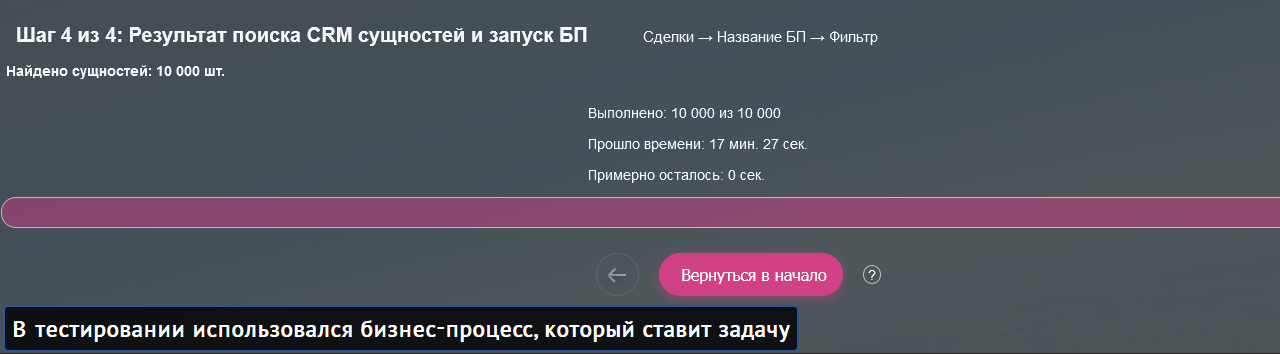- Выставляйте паузу в (сек.) между запусками бизнес-процессов.