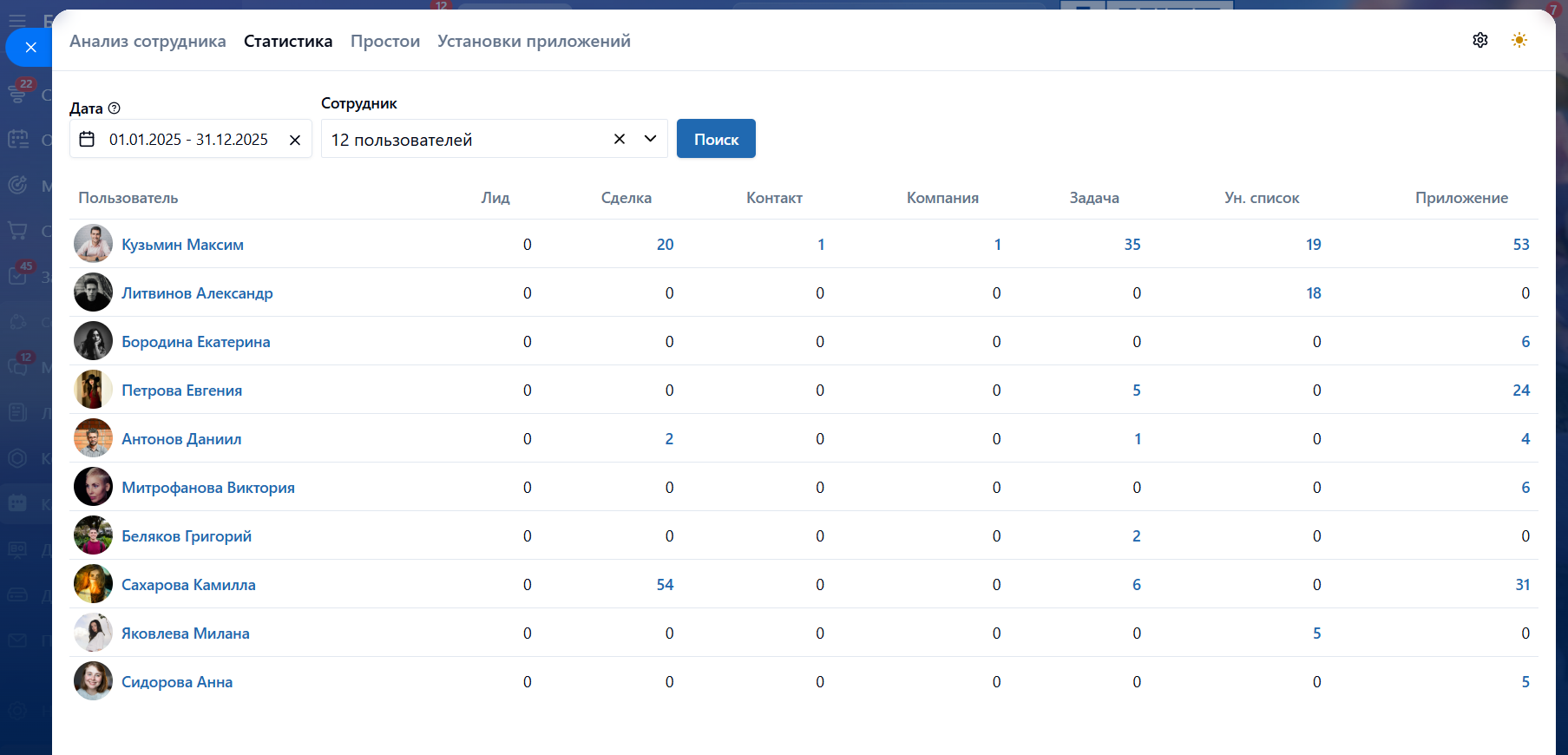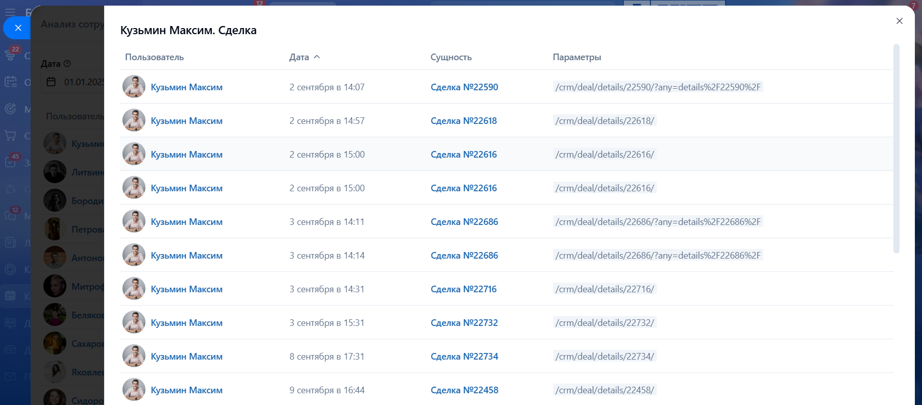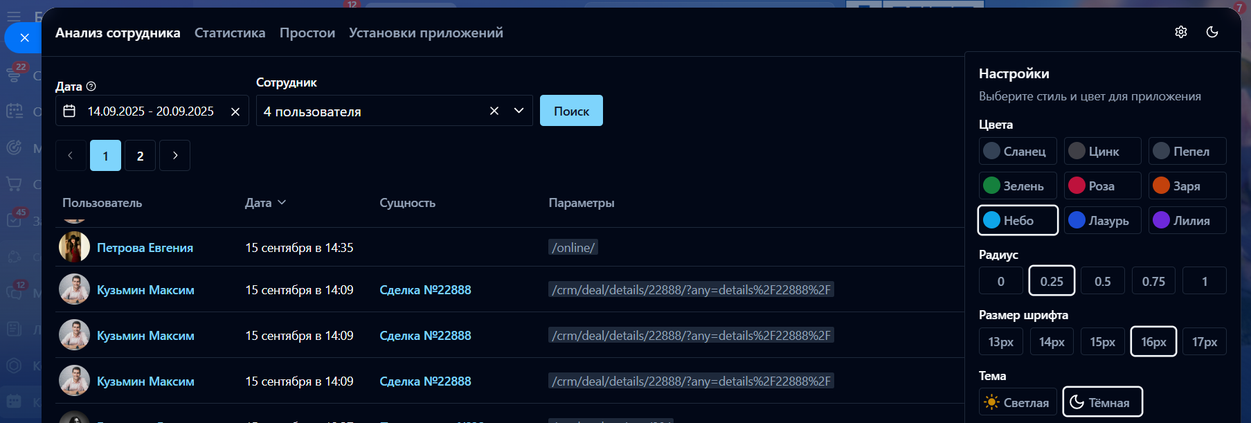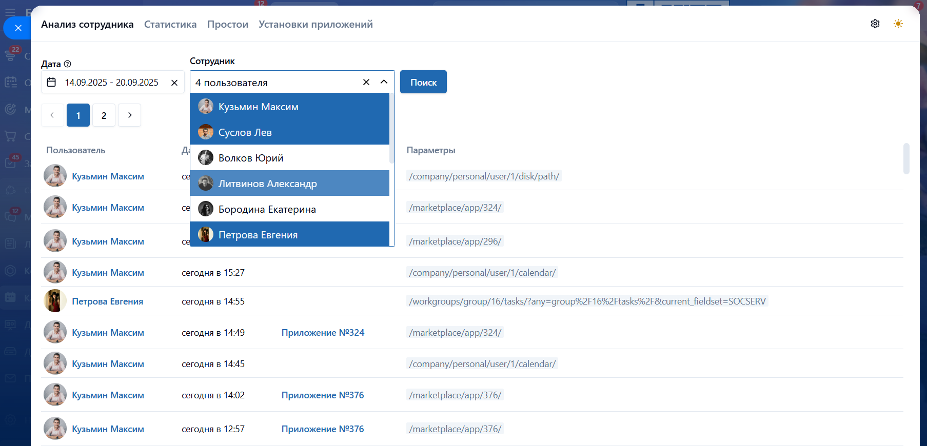 • Анализ сотрудника. Получить детальную статистику о страницах, которые посещают сотрудники в Битрикс24 за период;