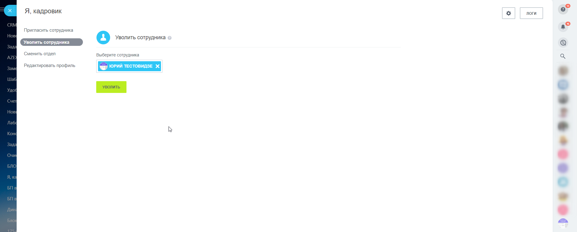 - Сотрудник с правами не сможет уволить сам себя и того, кто установил приложение.