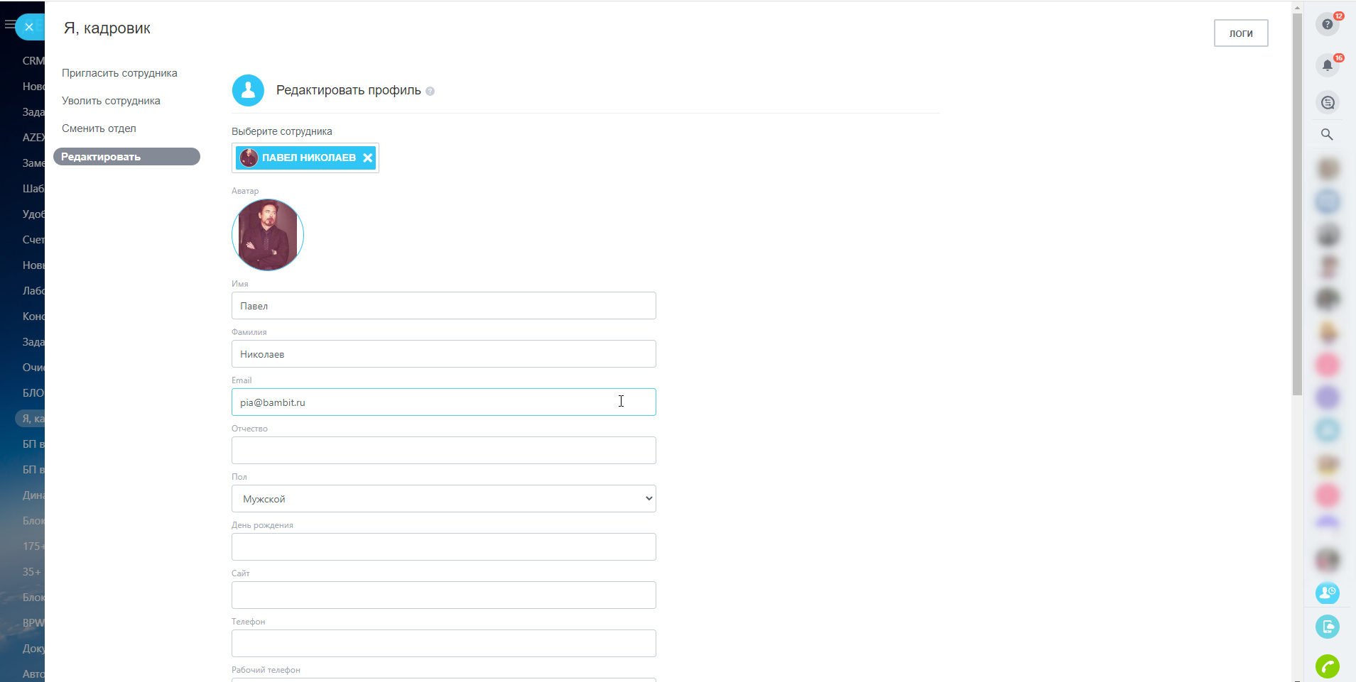 - Добавлена возможность редактировать пользовательские поля сотрудника.