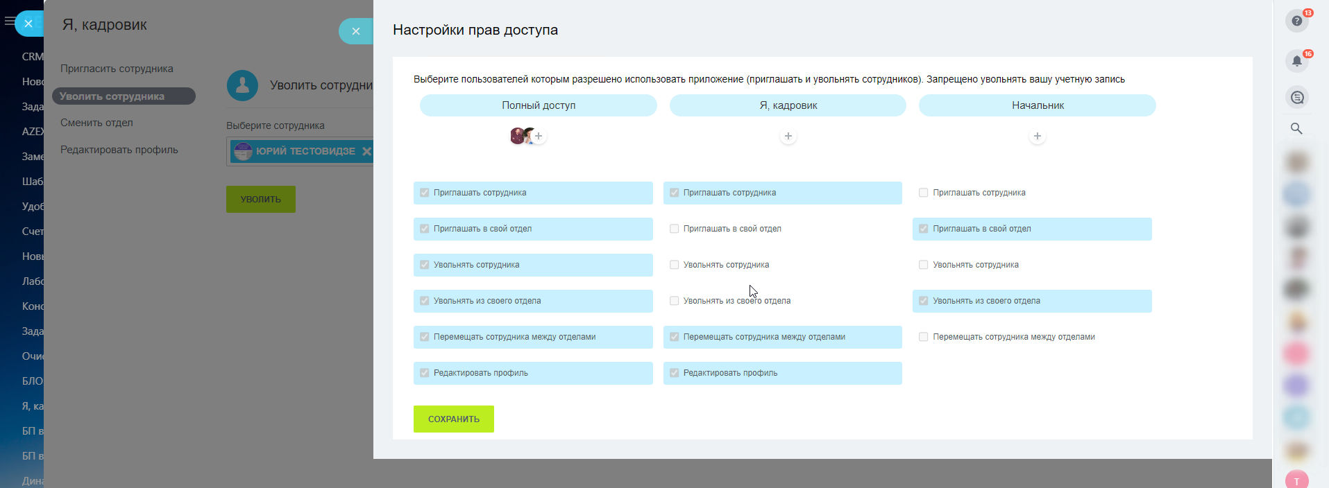 - Сократить права доступа для ответственного за приглашение и увольнение сотрудников;