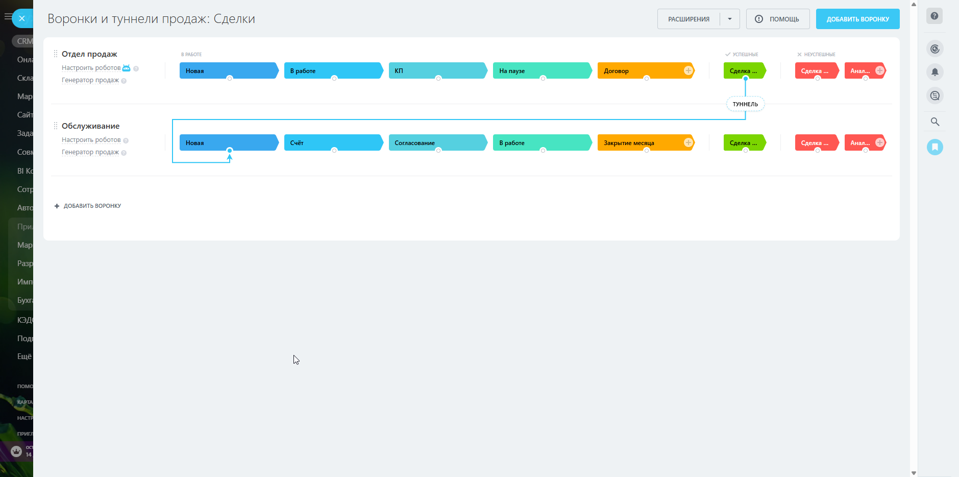 Базовая CRM-структура + мощная система автоматизации отчётности