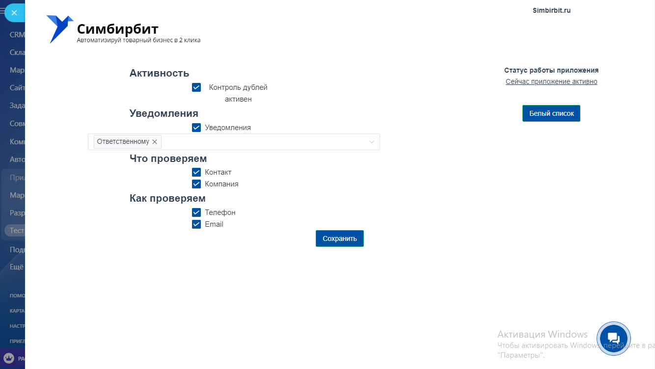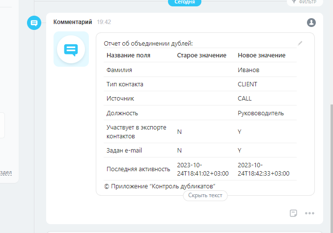 Проверяет новые контакты и / или компании на уникальность и, если сущность не уникальна (то есть, задублирована), то объединяет сущность по следующему алгоритму: