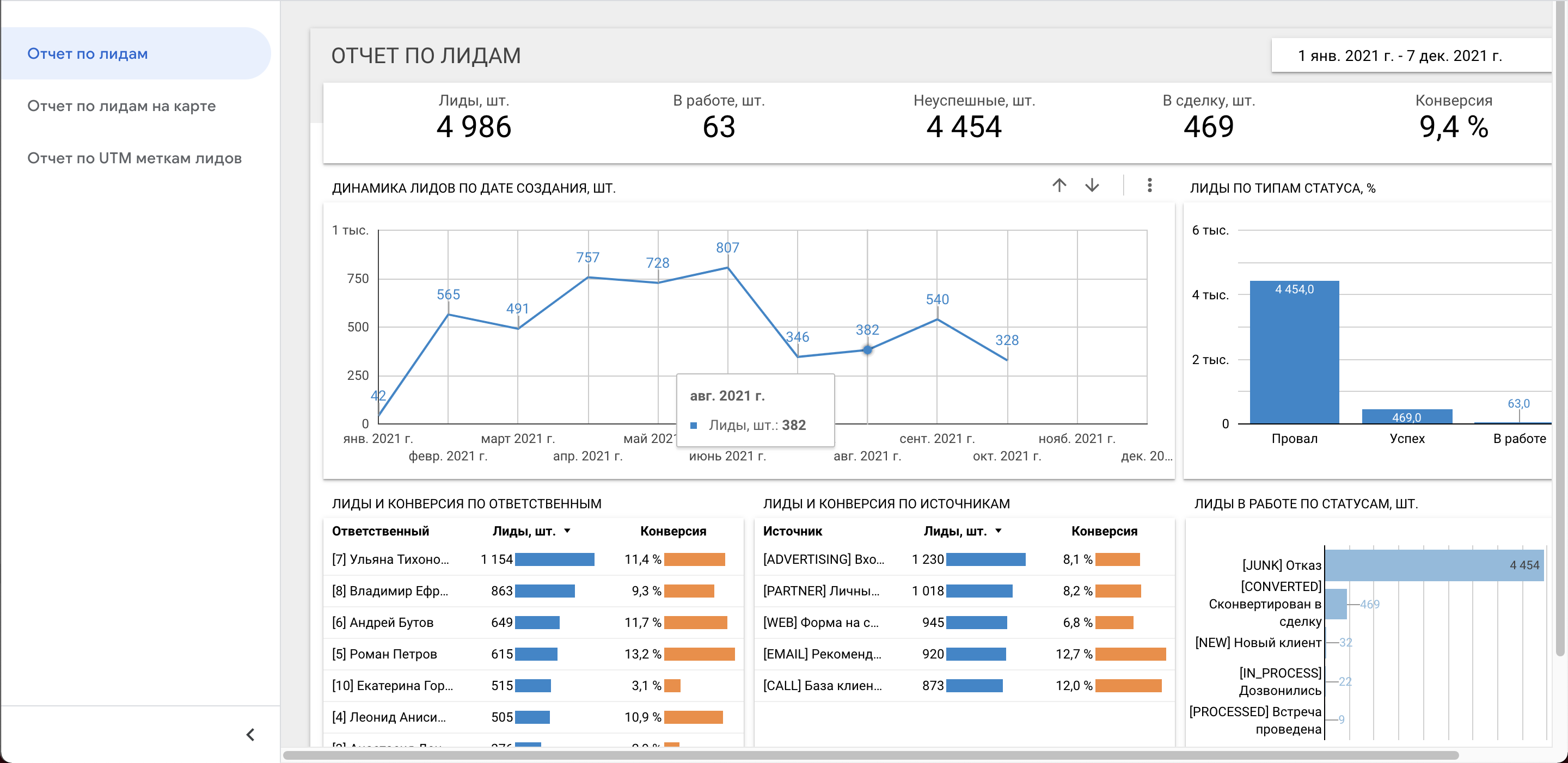 После этого работайте с данными из вашего Битрикс24 и создавайте отчеты в Google Looker Studio.