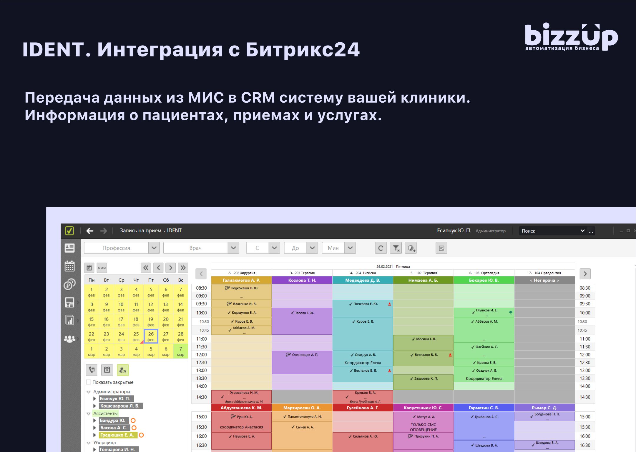По окончанию приема передаем в Битрикс24 данные об оказанных услугах и стоимость приема.