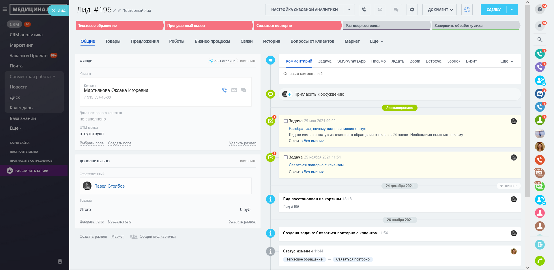 - Универсальная интеграция с МИС - для подключения Битрикс24 к МИС (требует отдельной проработки)