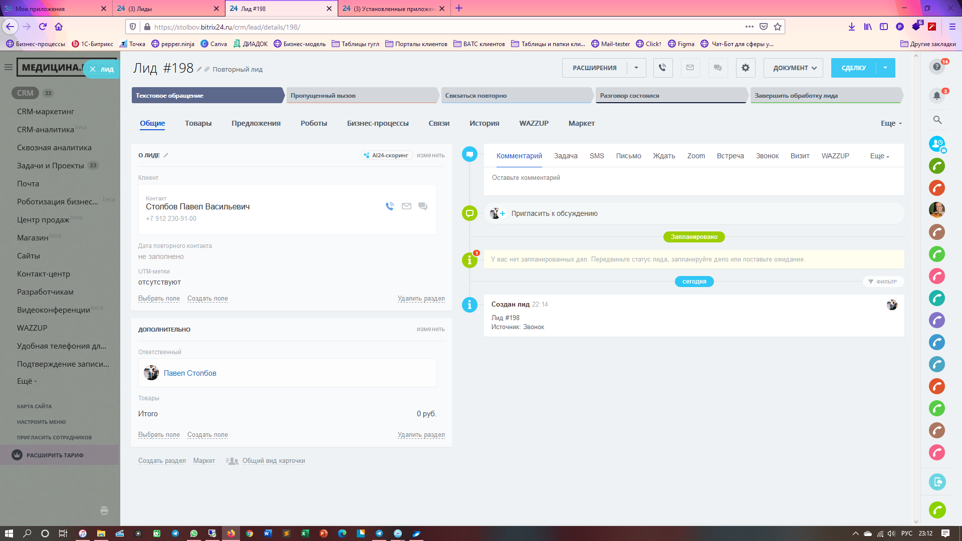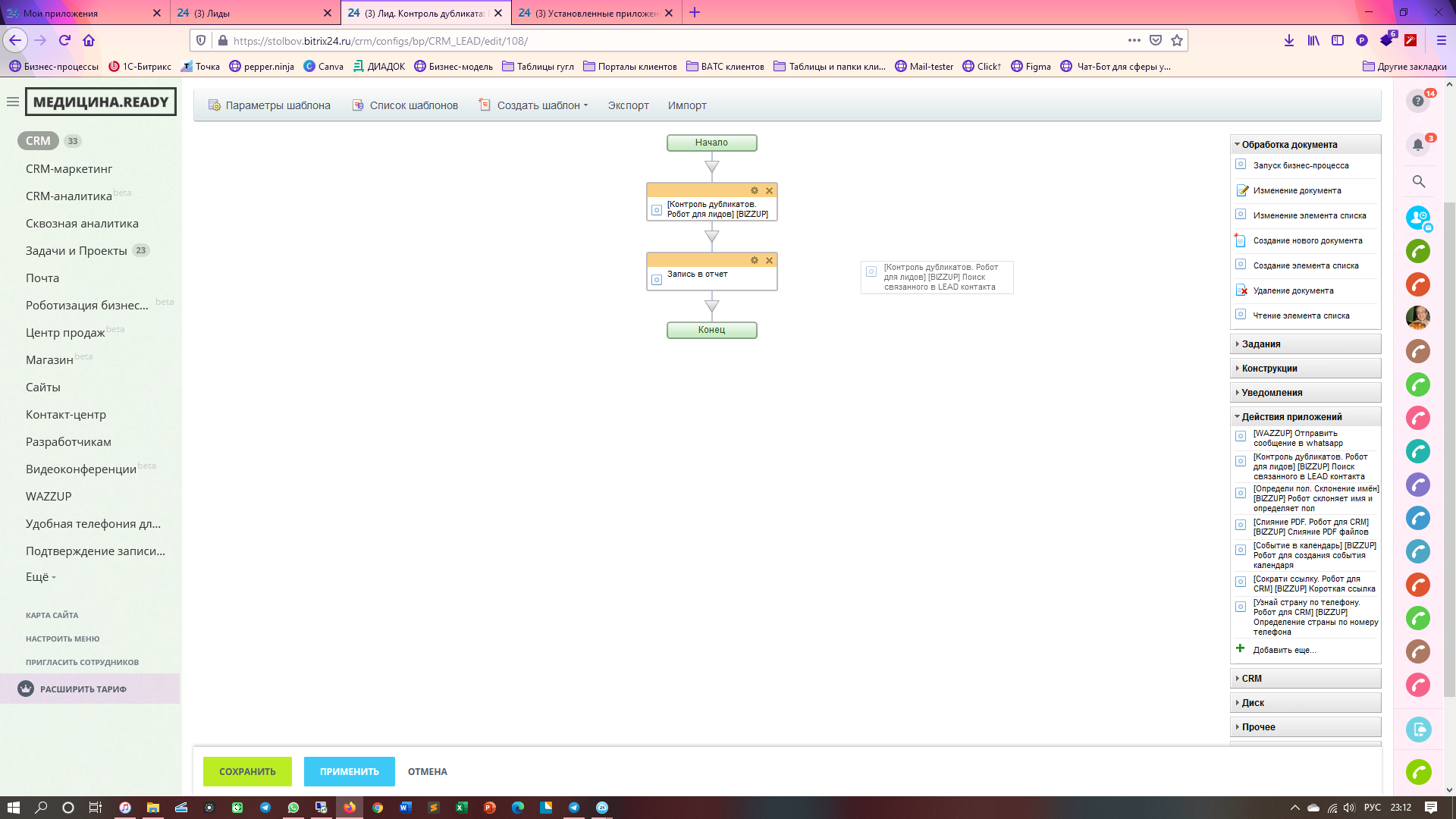 Контроль дубликатов. Робот для лидов