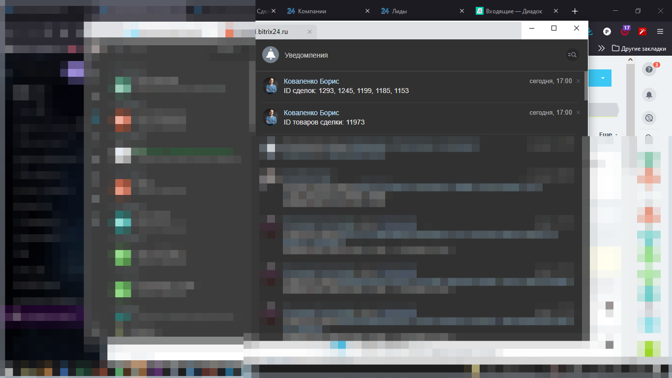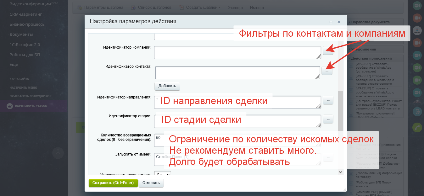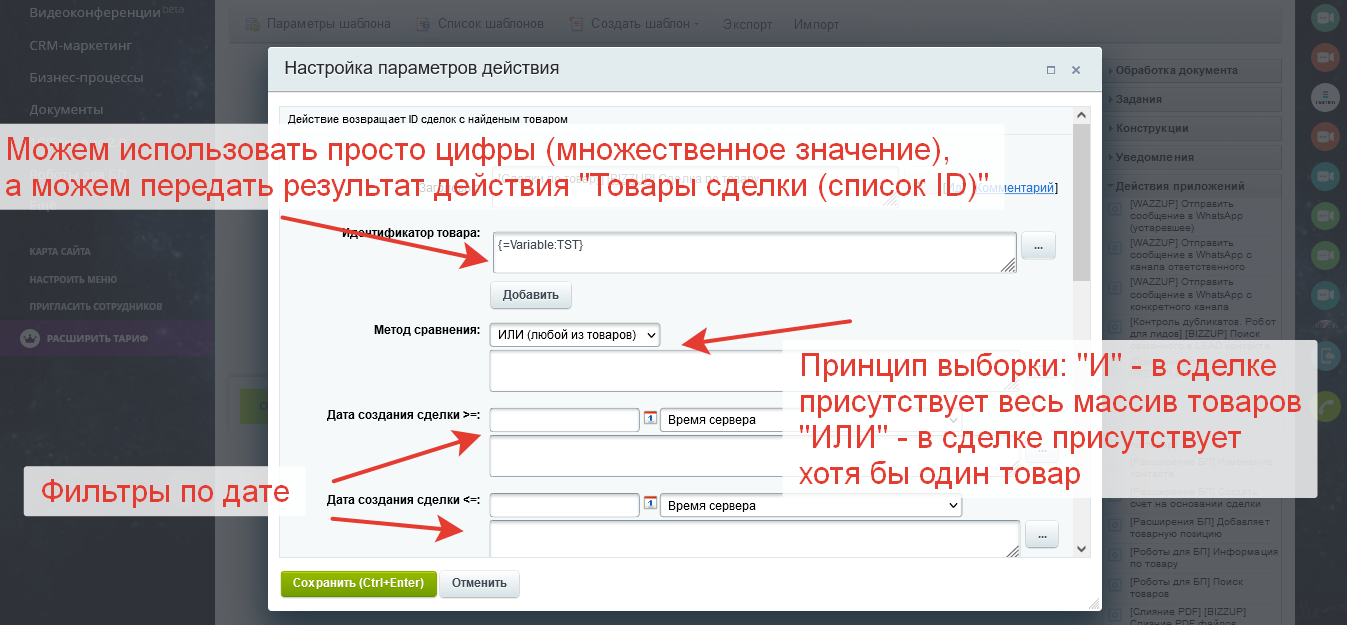 Приложение позволяет найти на портале сделки, в которых присутствует определенный товар. Поиск выполняется по ID товара, возвращаются ID сделок. Гибкая фильтрация.