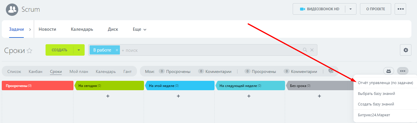 "Закрытые не в срок" - показывает задачи, которые были завершены после наступления крайнего срока. Это просроченные завершенные задачи.