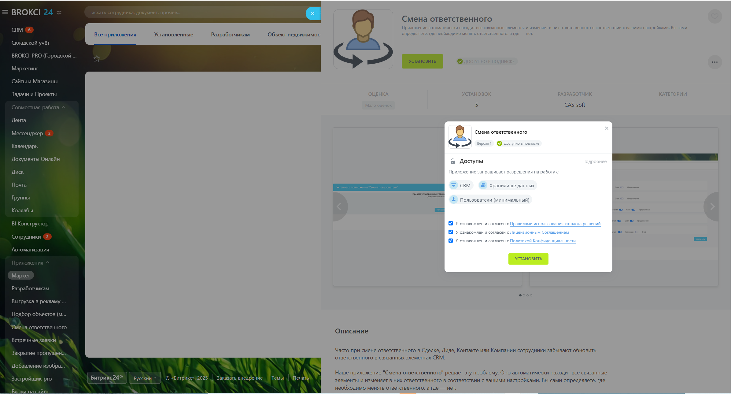 Наше приложение "Смена ответственного" решает эту проблему. Оно автоматически находит все связанные элементы и изменяет в них ответственного в соответствии с вашими настройками. Вы сами определяете, где необходимо менять ответственного, а где — нет.