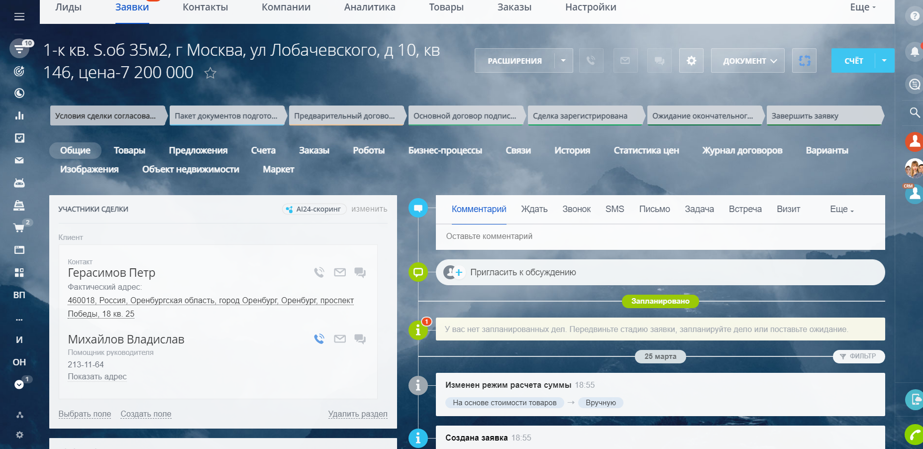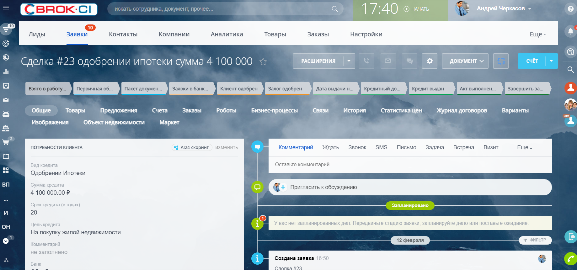 - оформление ипотечных заявок и контроль стадии заявки, отправленной в банке;