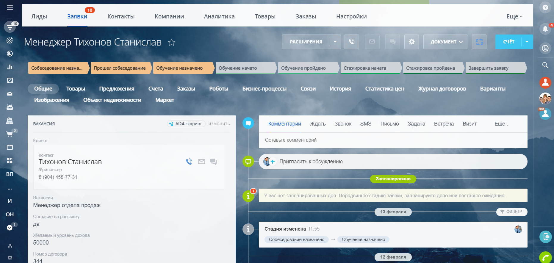 Для того, чтобы работать с большим количеством информации было удобнее, в решении настроены карточки лида, контакта и сделки, состоящие из разделов, объединяющих логически связанные поля.