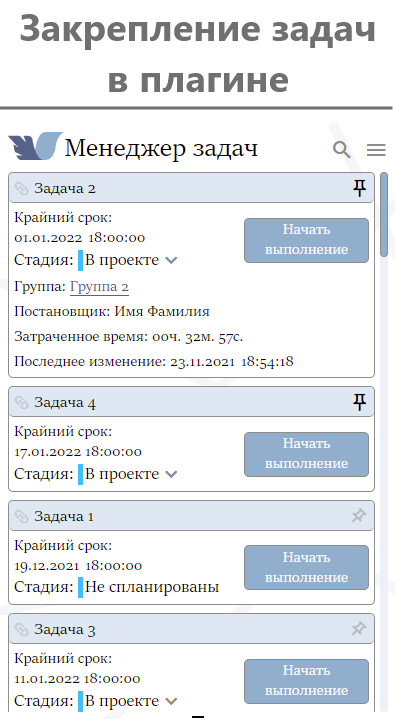 - Для удобства использования в плагин встроена функции поиска, закрепления в верхней части списка задач, отображения количества поставленных сотруднику задач, а также отображение задач, у которых крайний срок выполнения – сегодня.