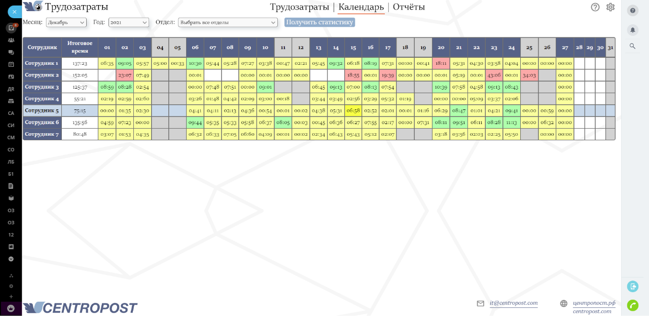 1. руководство компании и администраторы портала могут получать отчёты по любому из сотрудников;