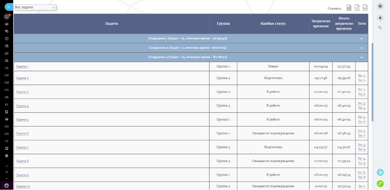 7. статусу задач (все задачи/завершённые/находящиеся в работе).