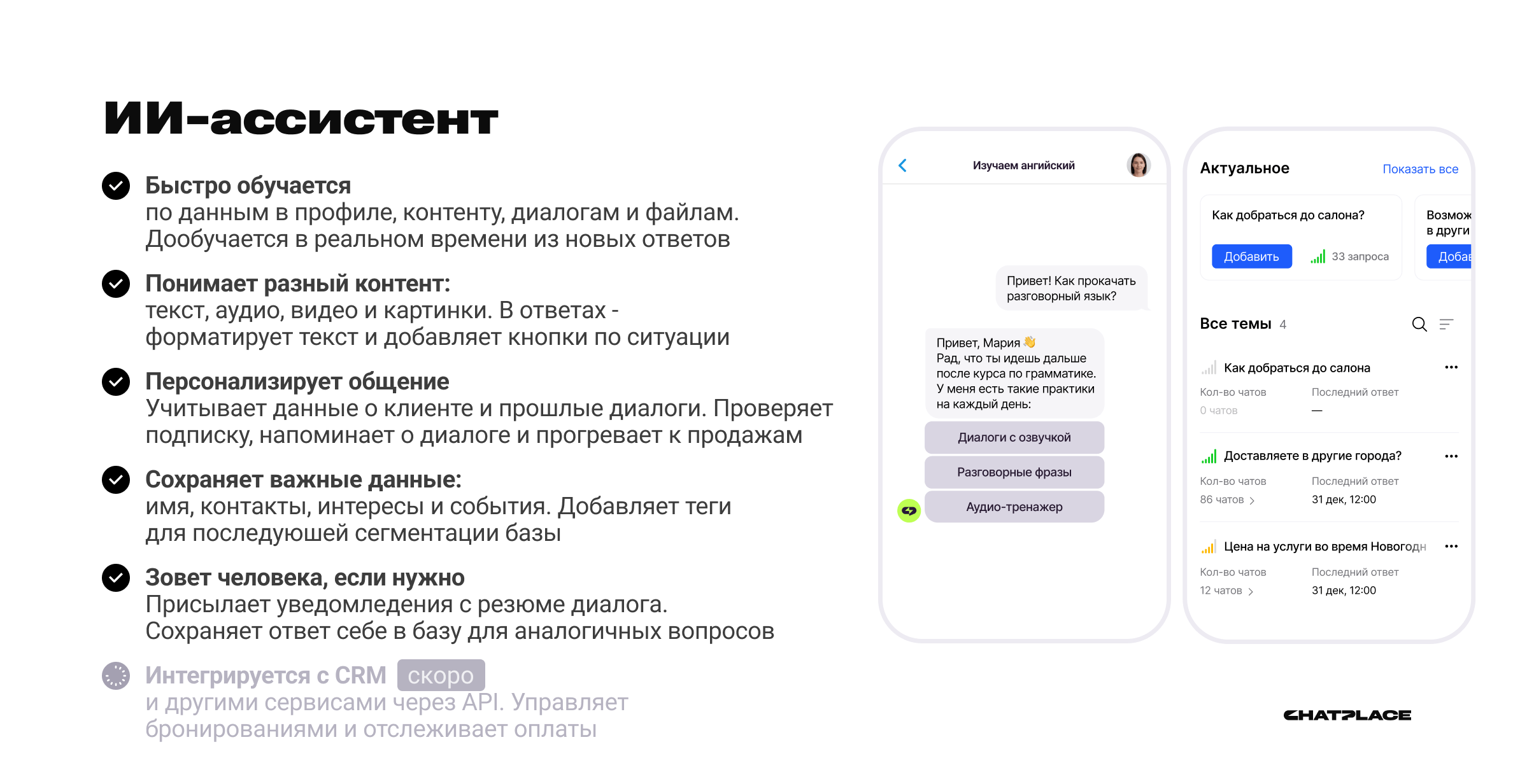 Основные возможности ChatPlace: