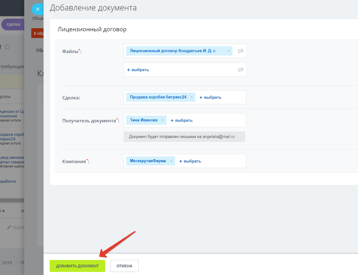 Снимает необходимость в бумажных архивах. Экономит время на сканирование оригиналов и прикрепление их к сделкам на портале Битрикс24.
