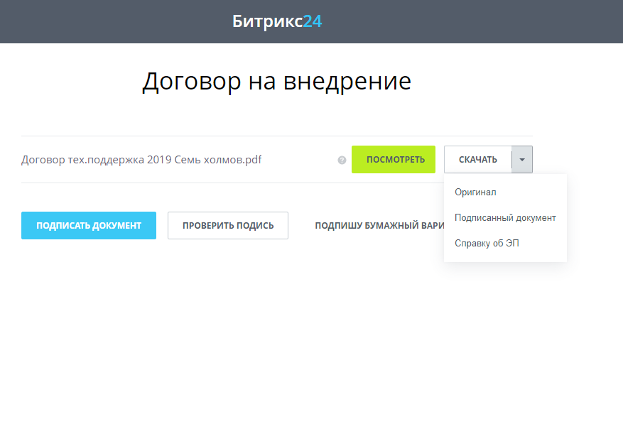 — Подписывать квалифицированной ЭП файлы из Битрикс24.Диск