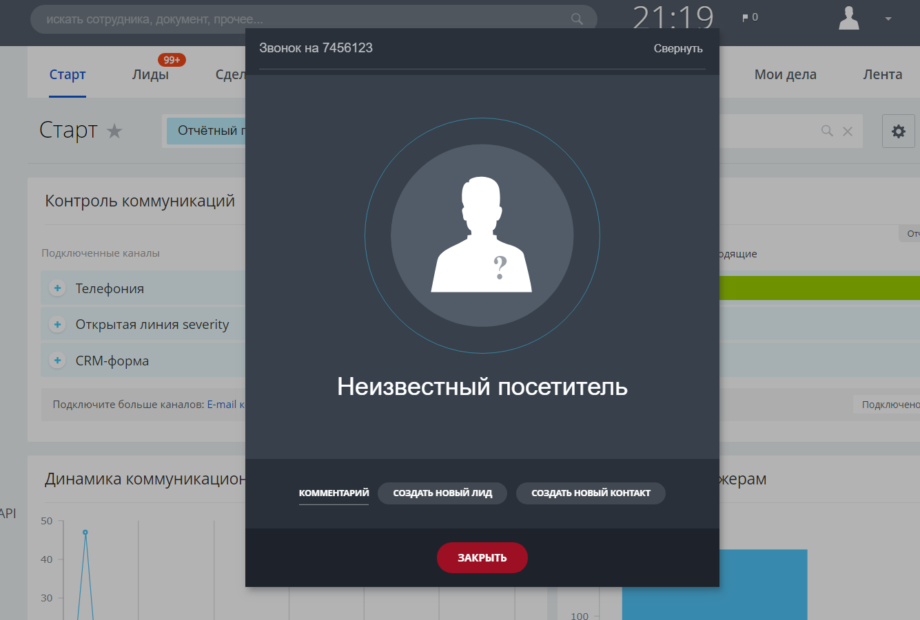 - Автоматическое создание лида/сделки при звонке с неизвестного номера