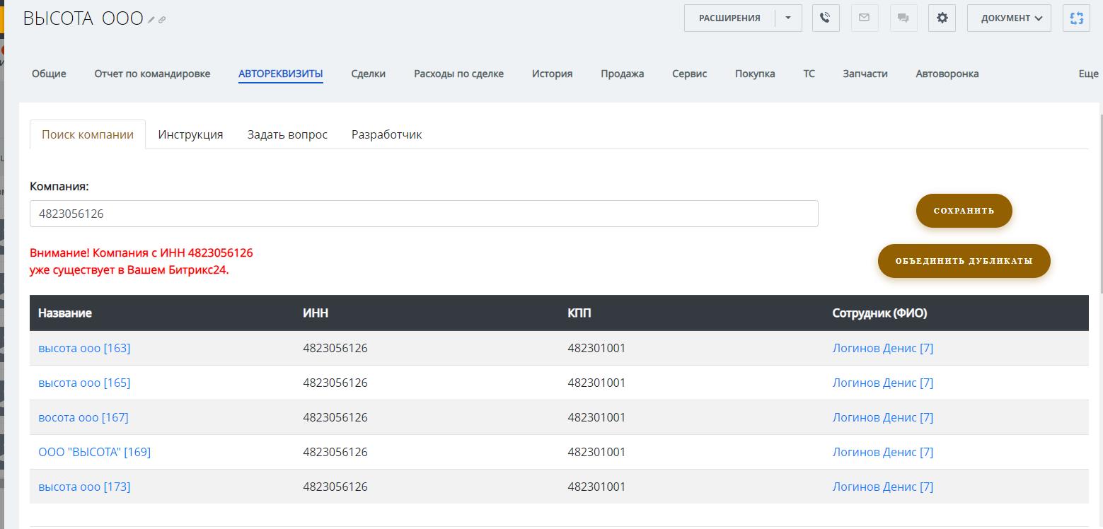 - Шаблон написания в битрикс24.crm (краткая опф +название + инн) отличается от принятого стандарта 1с