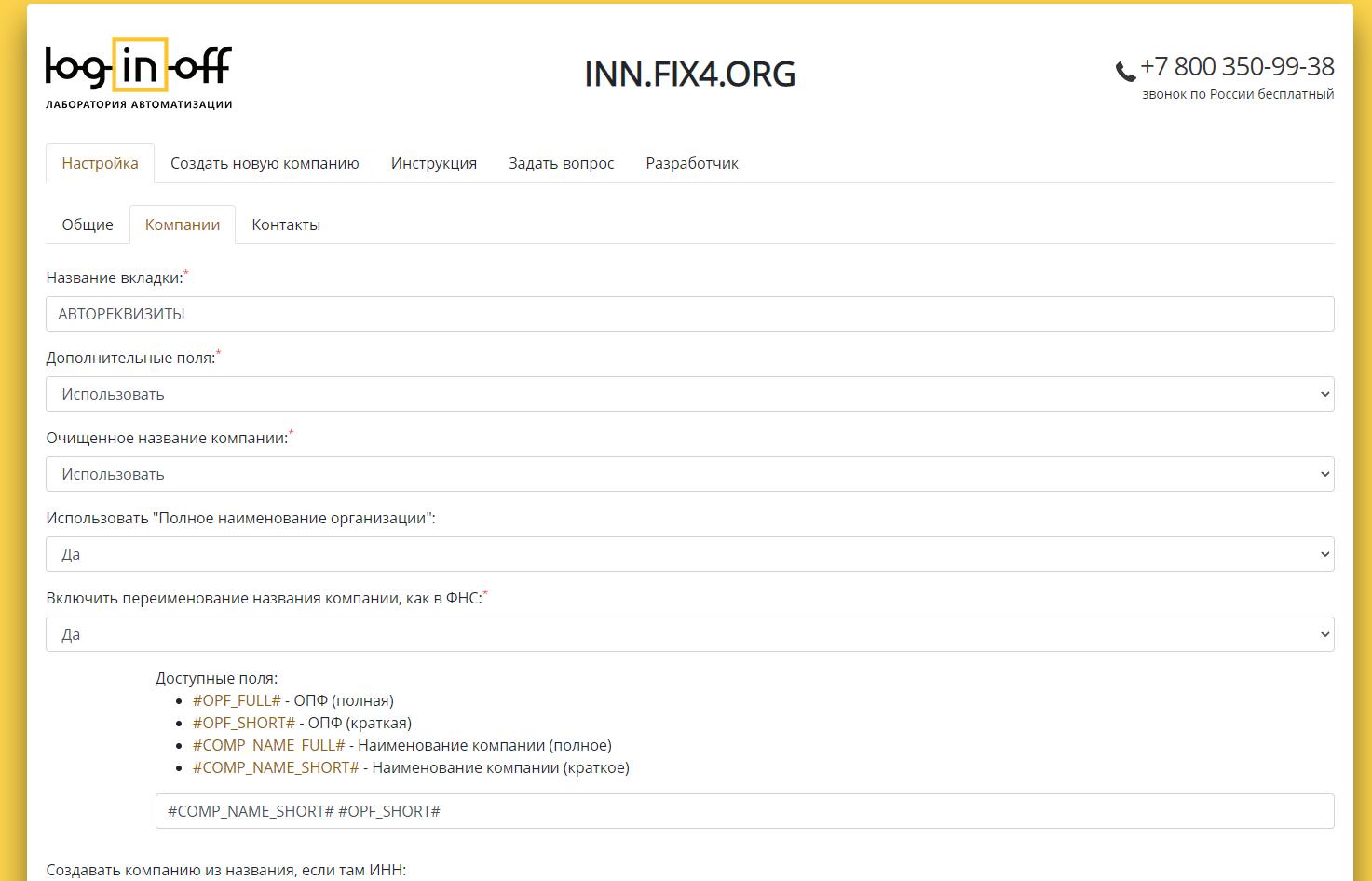 Быстрое заполнение реквизитов компаний и банка [INN.FIX4.ORG]