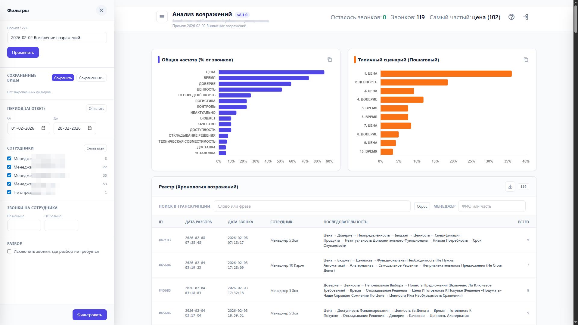 • что повторяется из звонка в звонок