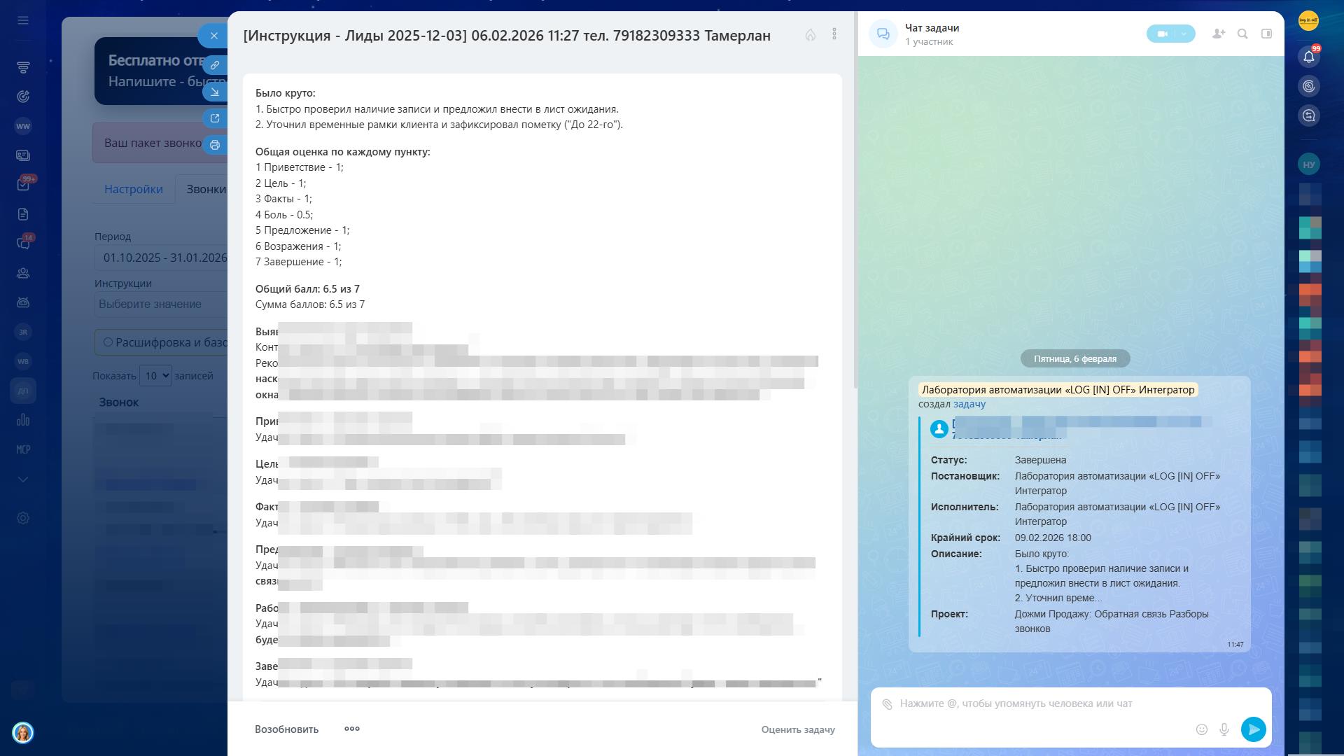 3) После звонка менеджер получает не “отчет”, а действие
