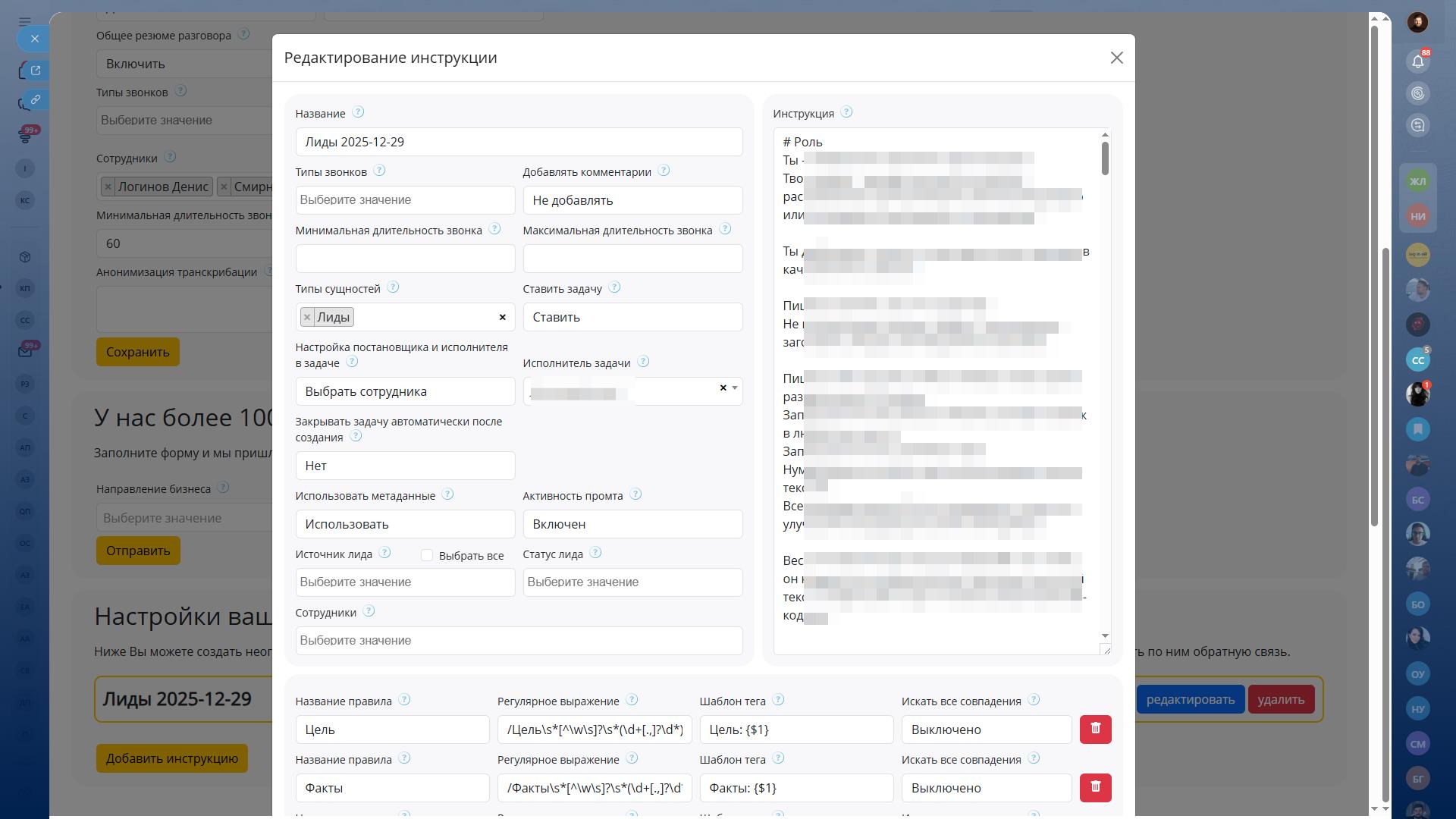 • сценарии (входящий / исходящий / первичка / VIP / B2B и т.д.)