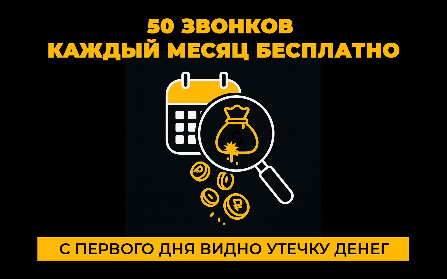 Вы устанавливаете приложение и 50 звонков в месяц будут разбросаны по 7-ми критериям. Вы видите, где именно утекают деньги и что менять в первую очередь.