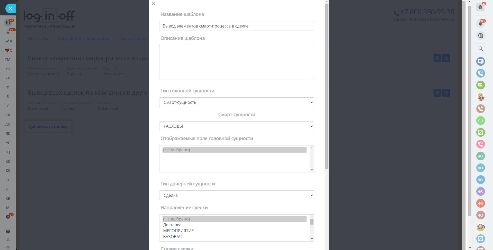 - В каждой настройке можно выбрать какие поля будут выводиться, а также установить дополнительные сужающие фильтры по направлениям воронок.