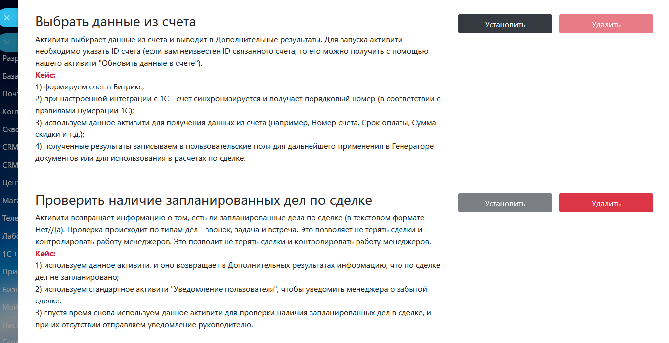 Кстати, CRMBO.Арсенал активити для бизнес-процессов - это лишь один из инструментов, необходимых для Битрикс24. Узнайте больше о том, как заставить свою CRM побеждать, на сайте https://crmbo.ru/
