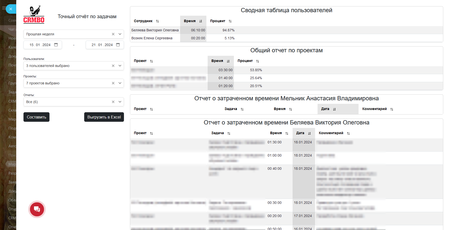 CRMBO.Точный отчёт по задачам: