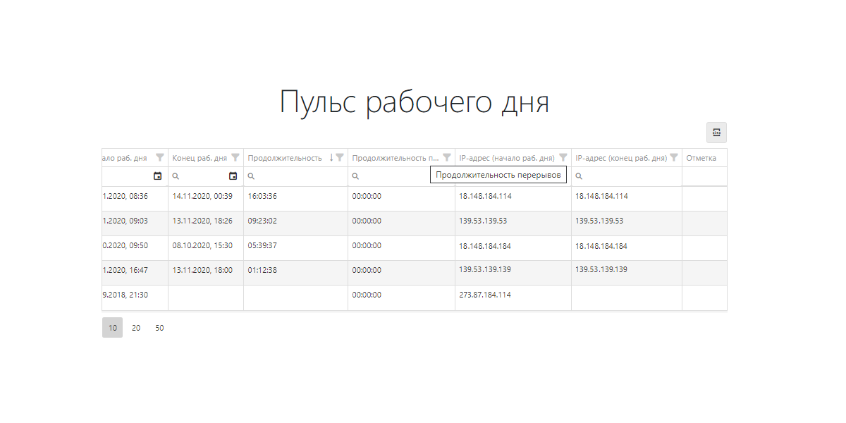 IP-адрес, с которого было зафиксировано начало текущего (или последнего) рабочего дня